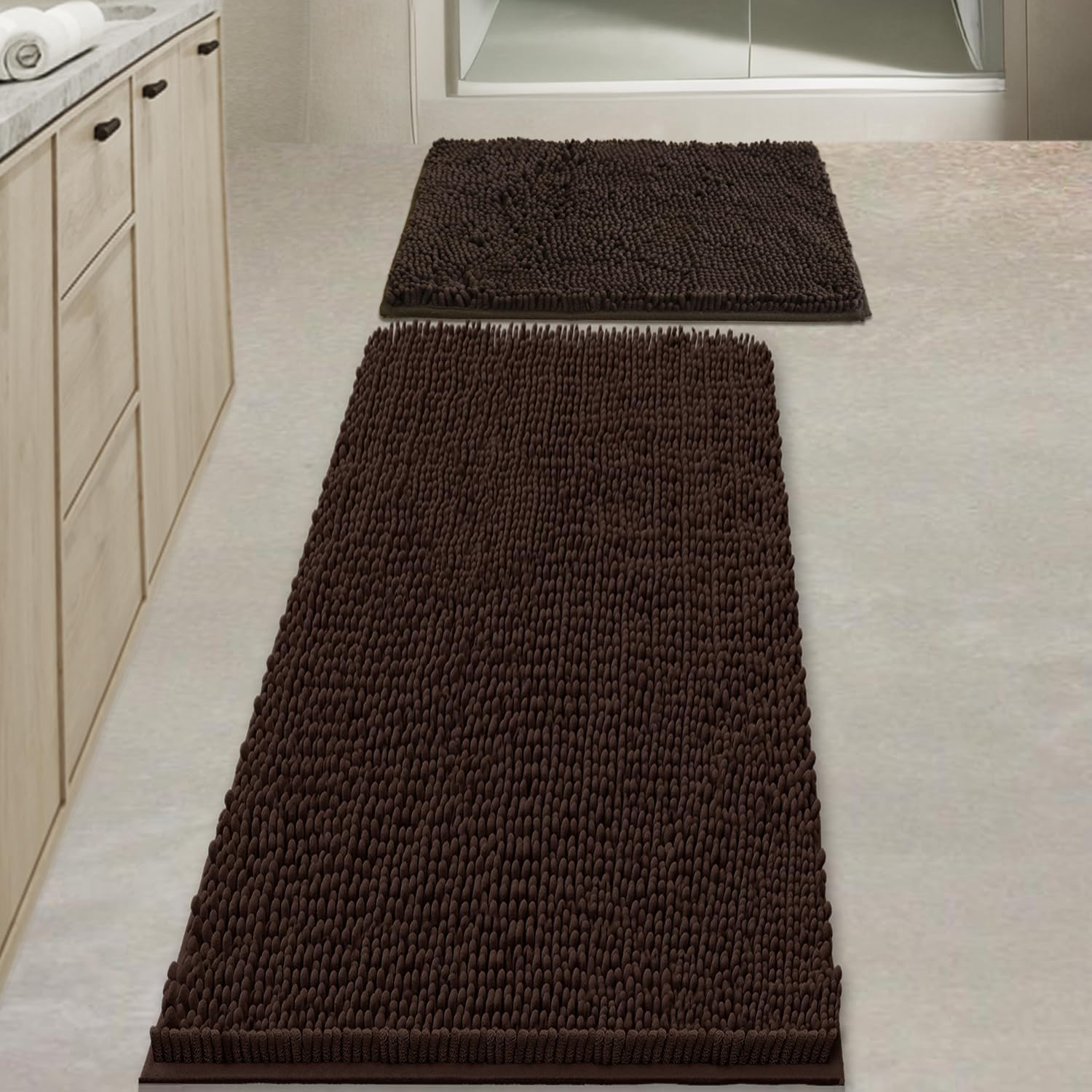 • BATHROOM RUG SET——There are bathroom mats sets 2 piece. The two rugs for bathroom are in different sizes. They are 32 by 20 inches and 24 by 16 inches. The 32-by-20-inch size can be placed next to the tub or shower door, and the 24-by-16-inch size can be placed in front of the bathroom counter.