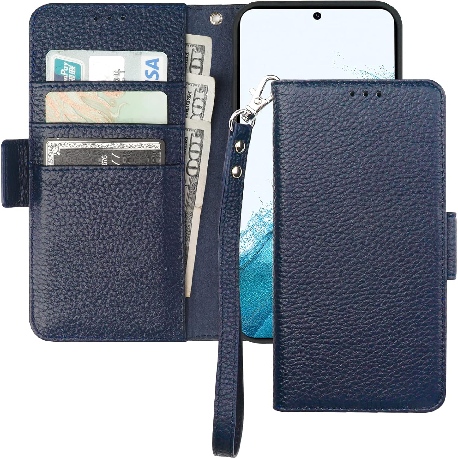 Additional Features Anti-lost Wrist Strap, Genuine Leather Wallet Case, Kickstand, Magnetic Case with Card Holder