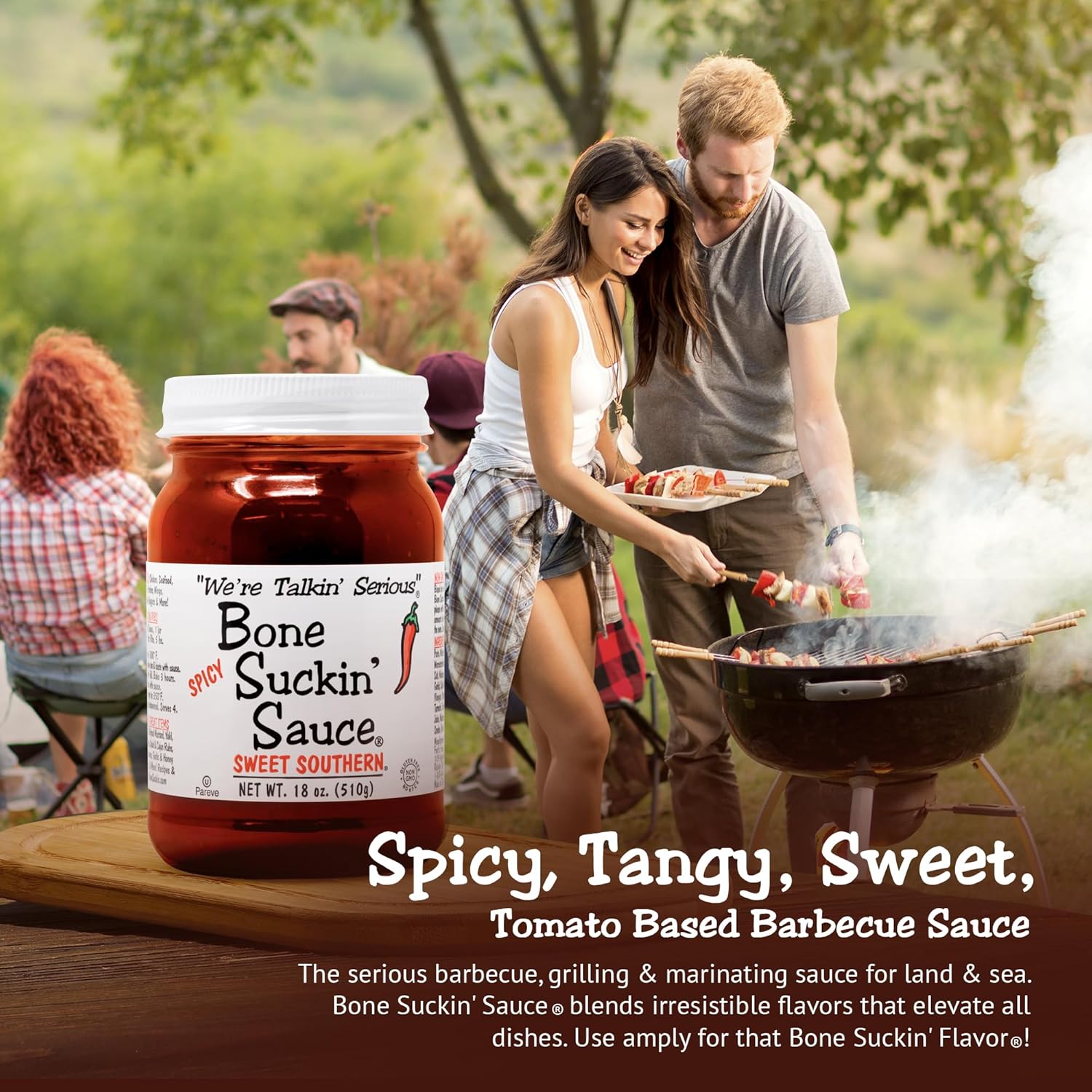 Elevate your culinary creations with Bone Suckin' Sauce Sweet Southern BBQ Sauce. Bone Suckin' Sauce is the small batch craft barbecue sauce that is 3rd party tested & verified, Made in the USA in glass bottles, beloved by the entire family for its delicuous taste and unmatched versatility. This exceptional sauce is Non-GMO, Gluten-Free, Kosher and has No High Fructose Corn Syrup, offering both health-consciousness and unparalleled taste and quality. From marinating, grilling, baking and dipping, Bone Suckin' Sauce transforms dishes into flavorful masterpieces. Its versatility knows no bounds, making it an essential gourmet addition to your kitchen. Embark on a culinary adventure and redefine your barbecue experience with Bone Suckin' Sauce.
