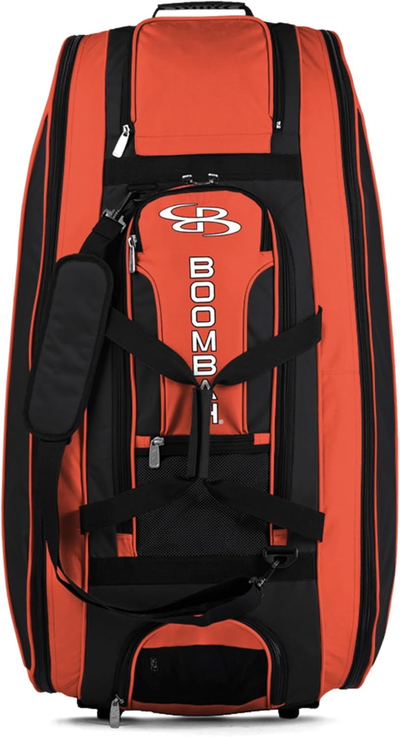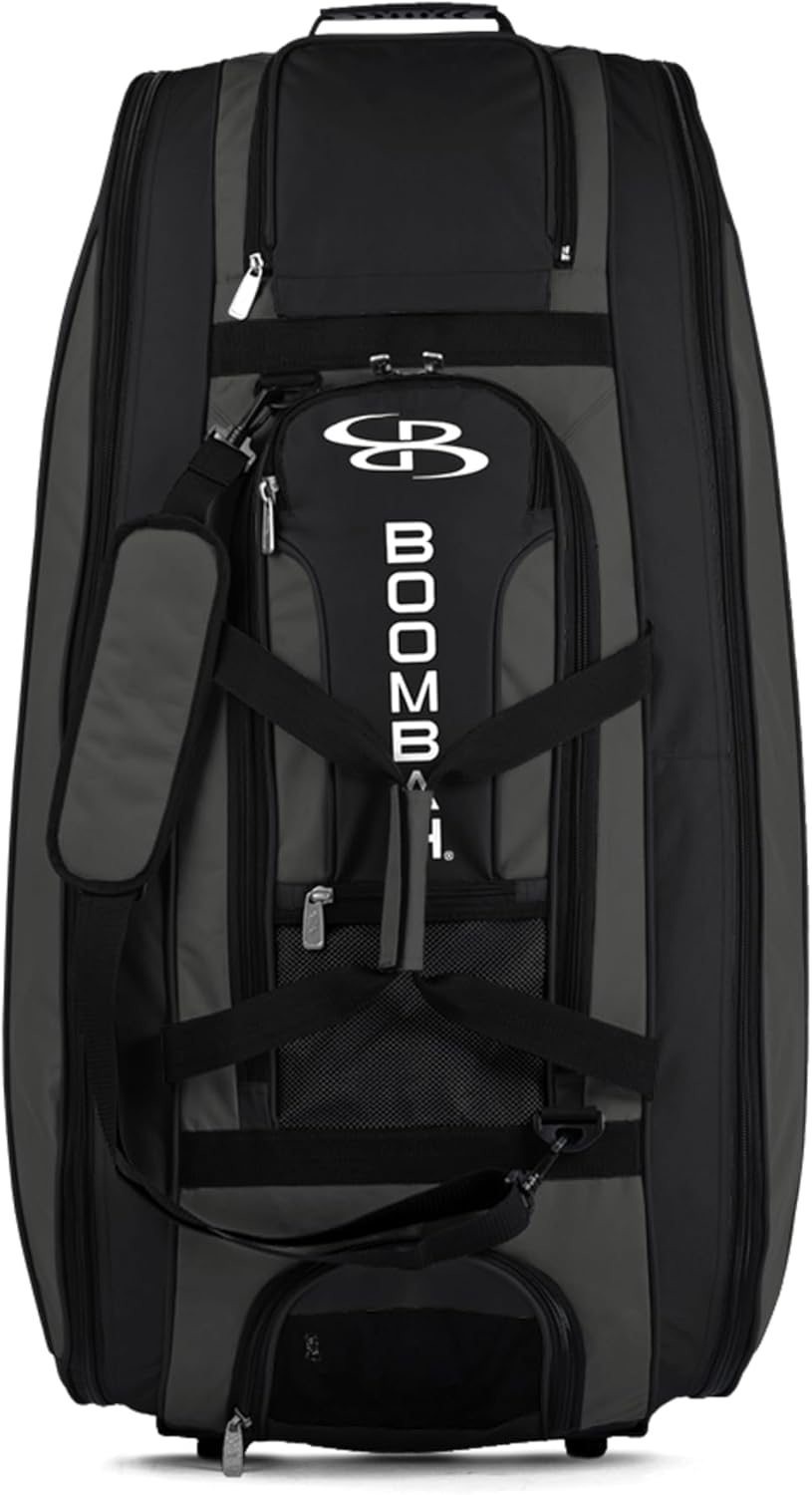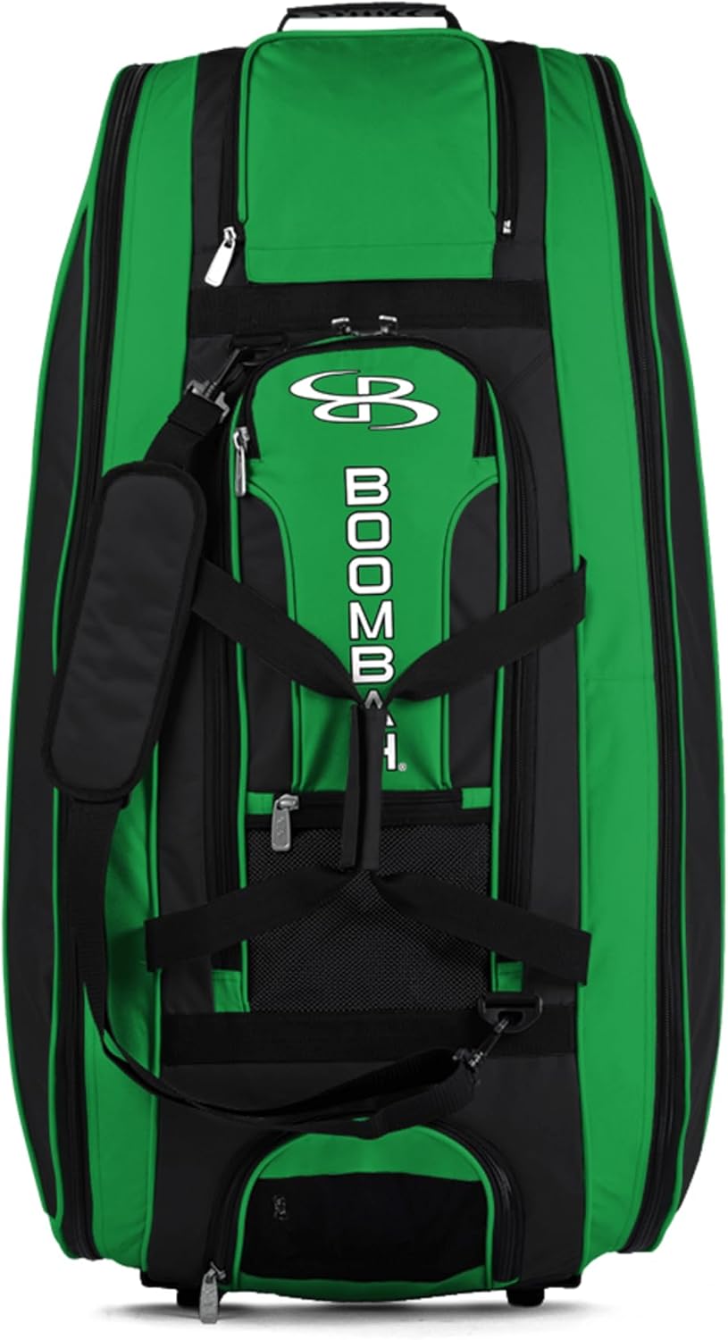 Boombah Beast Rolling Bat Bag - 40" x 14" x 13" - Multiple Color Options - Holds 8 Bats, Glove and Shoe Compartments The NEW and improved Beast features a molded handle, hard wear fabric on the bottom and reinforced seams. These improvements will keep your equipment protected and your bag lasting longer. Key features include: - Customizable Flap: Bag flap detaches so you can customize it with a name and number - Heavy Duty Hardware: Heavy duty hardware includes zippers, straps, and fence hooks built for the rigorous abuse of the season - High Quality Wheels: Wheels made out of heavy duty plastic with tread for off-road wheeling - Holds up to 8 bats - Reinforced J-Hooks: Make this bag easy to hang on the fence - Rubberized Handle: Provides a durable method of transportation while ensuring a comfortable grip - Separate Glove Compartment: Glove compartment separate from the rest of your gear to keep your leather clean and dry - Valuables Pocket: Small exterior pocket made to store your phone, keys and wallet so you can easily get what you need, when you need it - Ventilated Shoe Compartment: Ventilated shoe compartment keeps your dirty shoes separate from the rest of your gear while also providing adequate ventilation - Dimensions: 40"L x 14"W x 13"H - Boombah is transitioning some colors of our bags to create better matching throughout our lines of product. This may create some variation in color matching across all bags.About Boombah: Boombah baseball and softball products are part of our huge family of sporting gear, apparel and accessories. We design and manufacturer our own line of high quality sports equipment and gear for the sports you love.