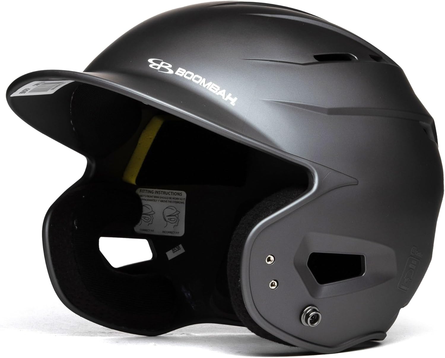 Boombah DEFCON Baseball / Softball Sleek Profile Matte Solid Batting Helmet - Multiple Colors - Two Sizes Our DEFCON model batting helmets are part of our full line of performance centric baseball and softball gear. Key features include: - Lightweight High Impact ABS Shell - Sleek Profile Streamlined Design Built for Speed - Dual Density Padding System for Protection and Comfort - Moisture Wicking Liner - Venting System designed for Maximum Airflow - Pre-drilled ready to attach mask and chin strap - Certified to Meet NOCSAE Standard - Offered in Junior and Senior Sizing - Junior Size fits 6 1/4" - 7" - Senior Size fits 7" - 7 3/4" - The Defcon Sleek Profile (BBH2SP) has a slightly snugger fit than the Defcon (BBH2) - WARNING: Do not use adhesive when attaching mask to helmet. This includes thread-lock, glue, epoxy etc. Use may cause shell damage or degradation that may not be visible and may cause personal injury. About Boombah: Boombah baseball and softball products are part of our huge family of sporting gear, apparel and accessories. We design and manufacturer our own line of high quality sports equipment and gear for the sports you love.
