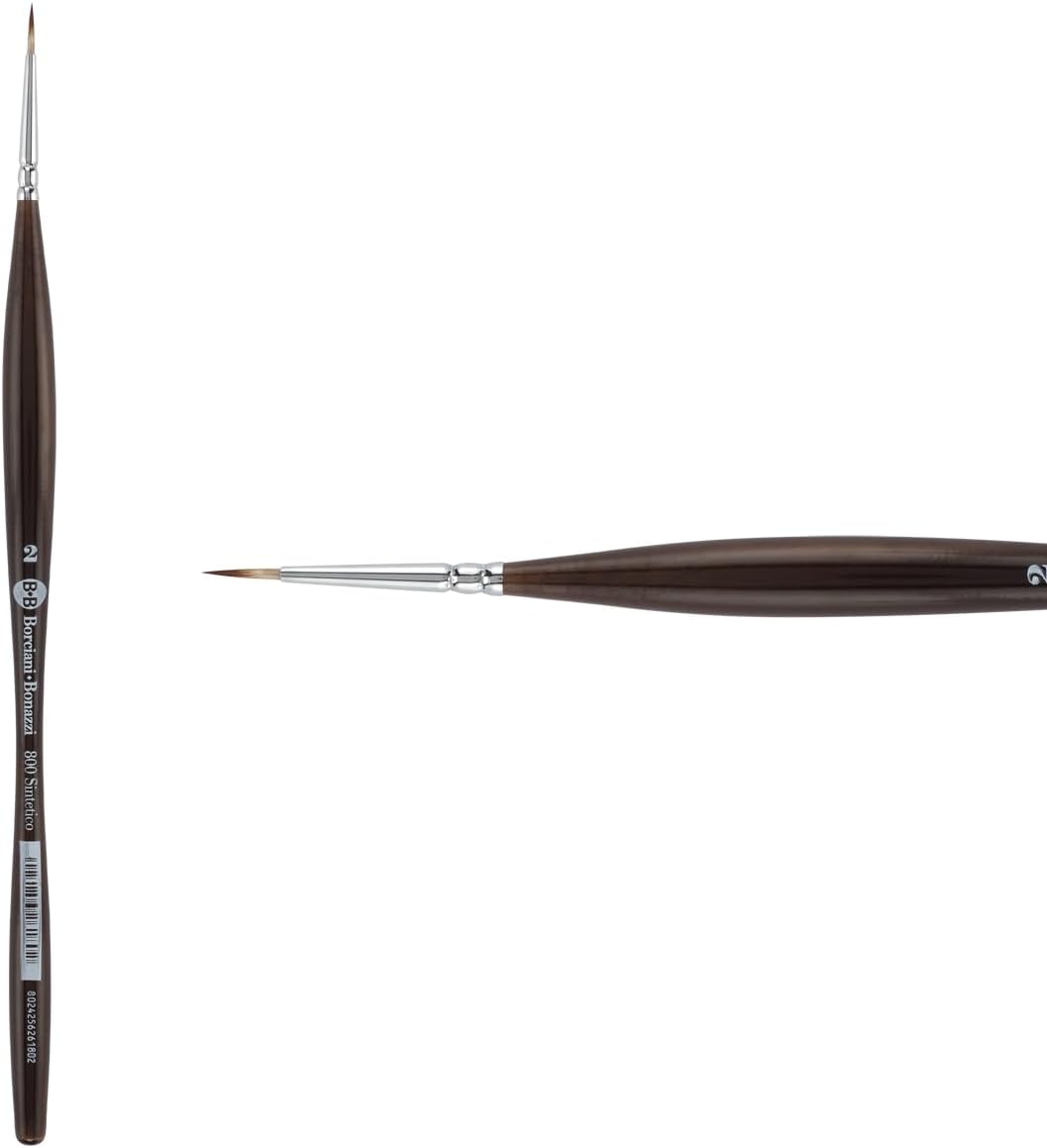 Introducing the Unico Synthetic Mongoose Brushes by Borciani e Bonazzi, a brand renowned for its commitment to excellence in creating artist supplies. Handcrafted in Italy by skilled artisans, these brushes are the epitome of professional quality. Designed for a variety of mediums, including oils, watercolors, and acrylics, our synthetic mongoose brushes are a testament to both innovation and tradition. The soft, absorbent bristles are crafted to mimic the snap and blend of natural hair, offering a smooth, controlled release of color perfect for artists who demand precision. The ergonomic, medium-length handle is carefully designed to reduce hand fatigue, making it ideal for both intricate detail work and sweeping brushstrokes. Its anti-roll feature ensures your brush stays exactly where you place it, preventing any unwanted interruptions in your creative process. Perfect for painting fine details with precise linework, these brushes excel in delivering delicate acrylic washes and are loved by both experienced oil painters and beginners alike. The long handle paint brush design provides versatility, allowing for close, detailed work or the ability to grasp the handle's end when working at an easel. Each brush is fitted with nickel-plated brass ferrules, providing durability and a sleek finish. Whether you're working with heavy body acrylics or exploring the delicate nuances of watercolors, these brushes offer exceptional performance. The set comes with a convenient carry case, making it travel-friendly and perfect for plein air sessions. Whether you're engaging in canvas painting or mixed media projects, the Unico Synthetic Mongoose Brushes are an essential addition to any artist's toolkit. Experience the blend of tradition and innovation with Borciani e Bonazzi's Unico brushes, and elevate your artistic endeavors with tools that honor the art of painting.