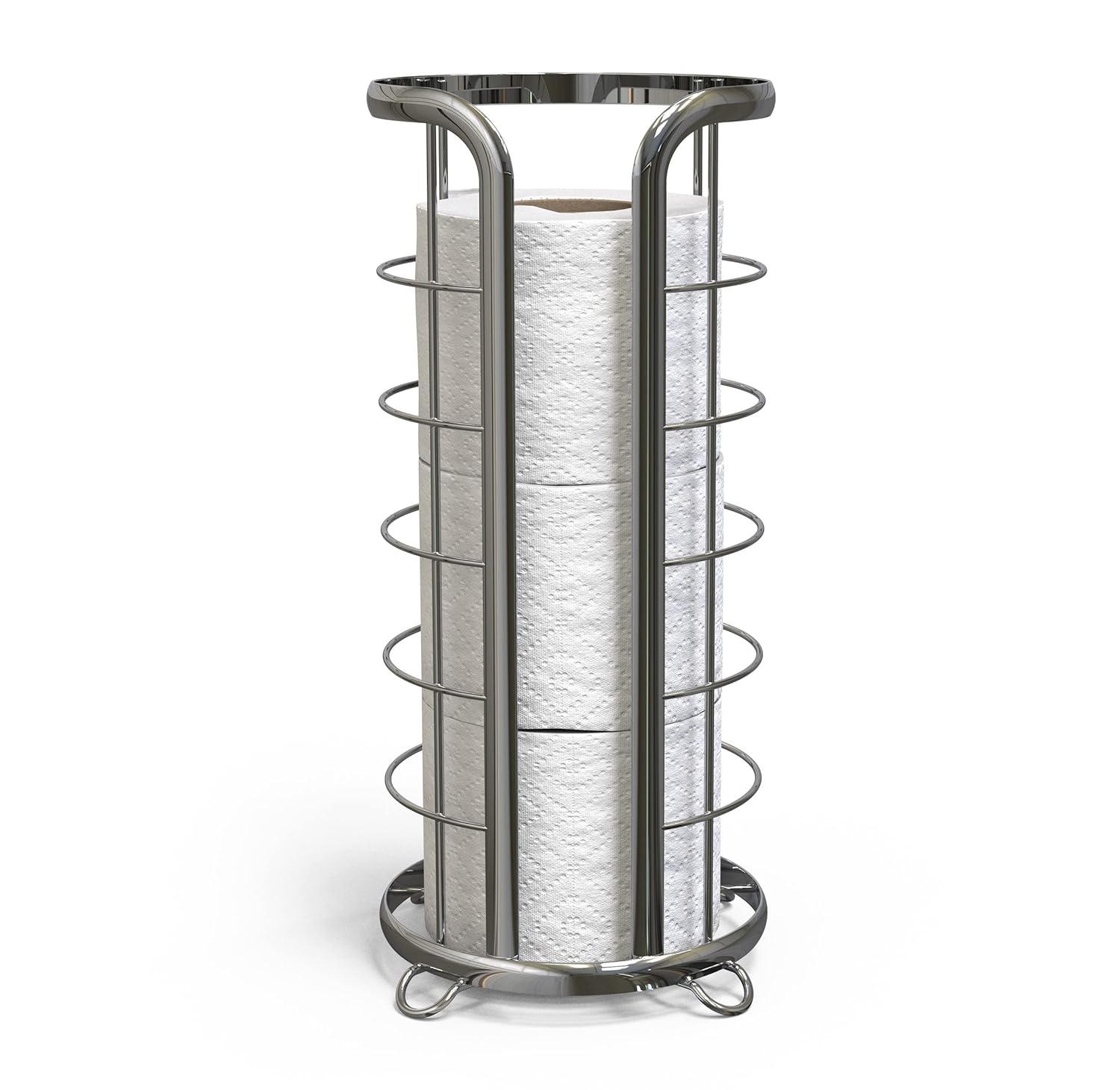 Holds up to 3 extra large mega rolls This freestanding toilet paper holder and dispenser is the perfect storage solution for your bathroom, to always ensure you and your guests have spare toilet rolls to hand when required. An ideal toilet tissue holder for full bathrooms, lavatories, RVโs, campers and cabins to create sleek, slim storage for your toilet paper at all times, and which complements most dรฉcor schemes. Easy fill toilet paper storage This toilet paper holder is so easy to use, even the kids can fill it up when needed! Featuring an open top and cutaway front design, simply pop the toilet rolls into the holder and remove with one hand by sliding each roll up and over the top when needed. Premium quality toilet tissue reserve holder Made from strong and durable materials, this is a high-quality bathroom storage solution that will last for years. Easy to care for, all that is needed is a wipe over with a damp cloth as required. BUY NOW and store your extra toilet rolls the stylish way with the Brookstone Black toilet paper holder!