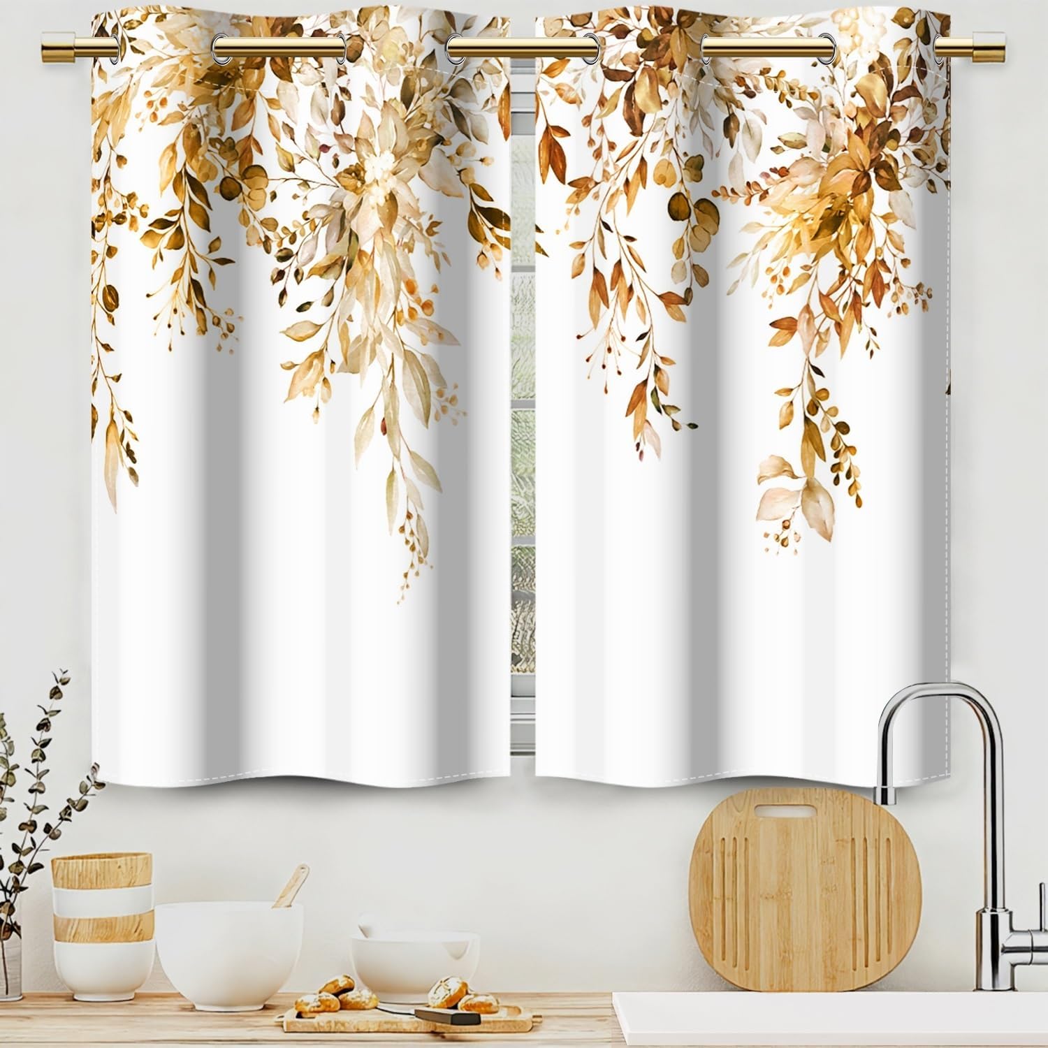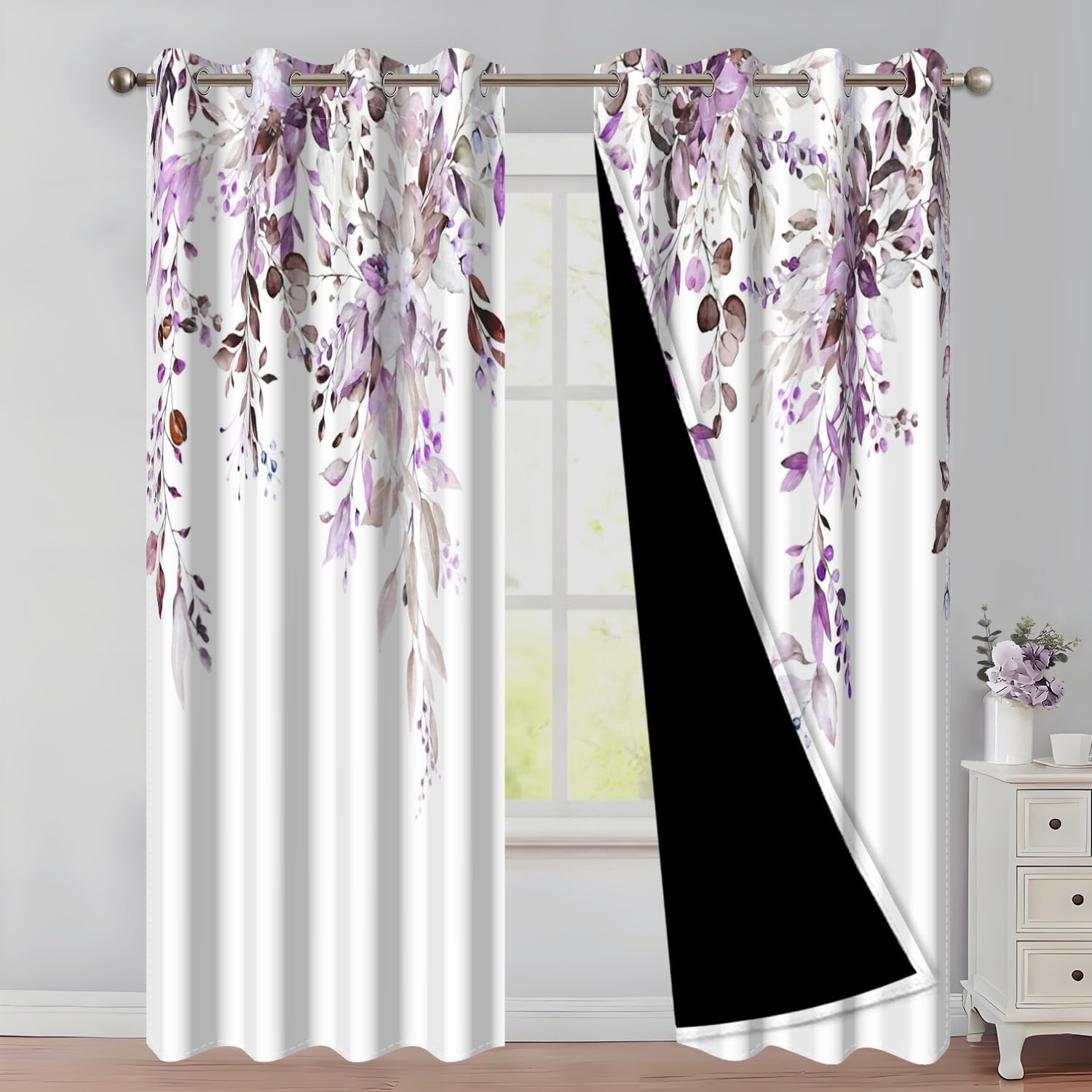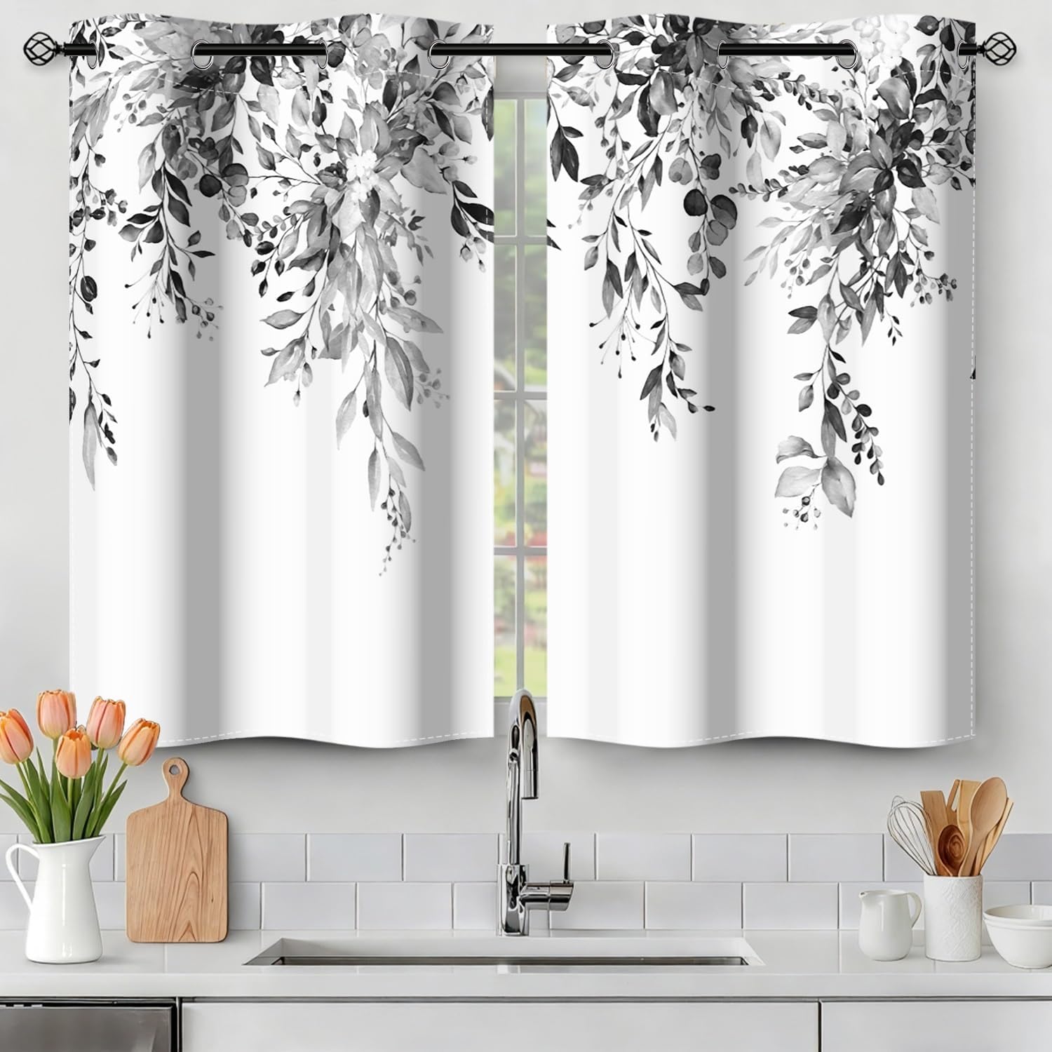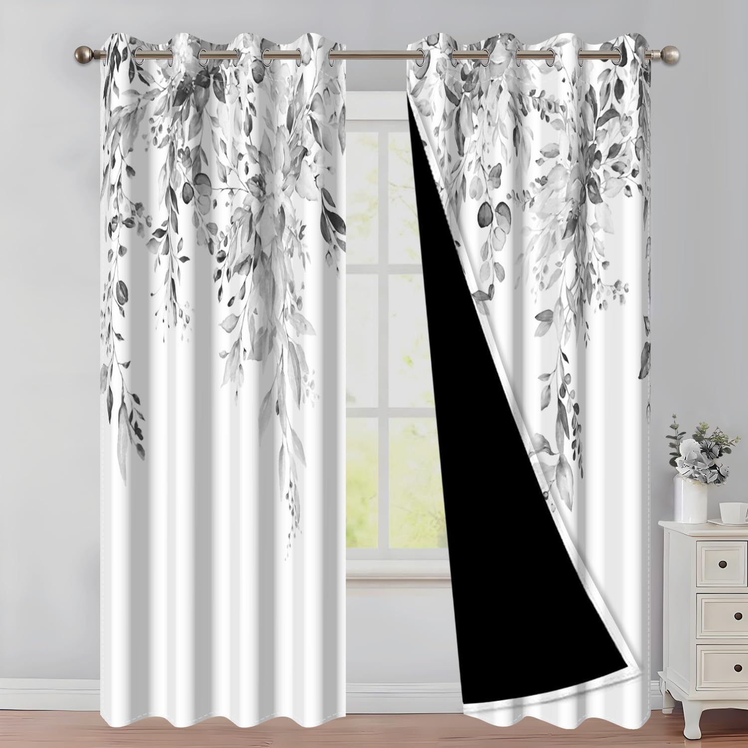 Brown Eucalyptus Blackout Curtains, Spring Watercolor Leaves with Floral Window Curtain for Living Room Bedroom Rustic Room Darkening Grommet Curtains, 42x63 Inch, 2 Panels