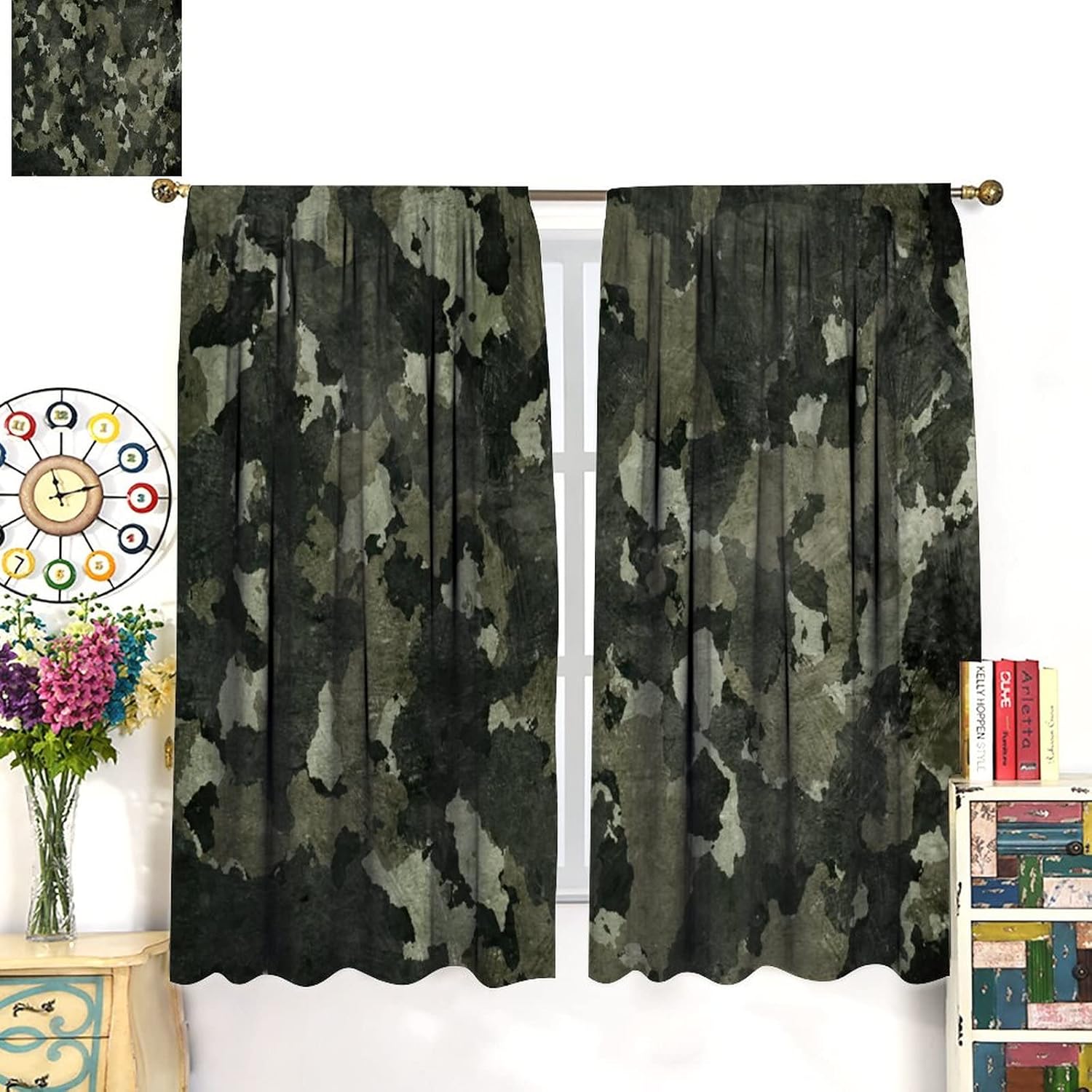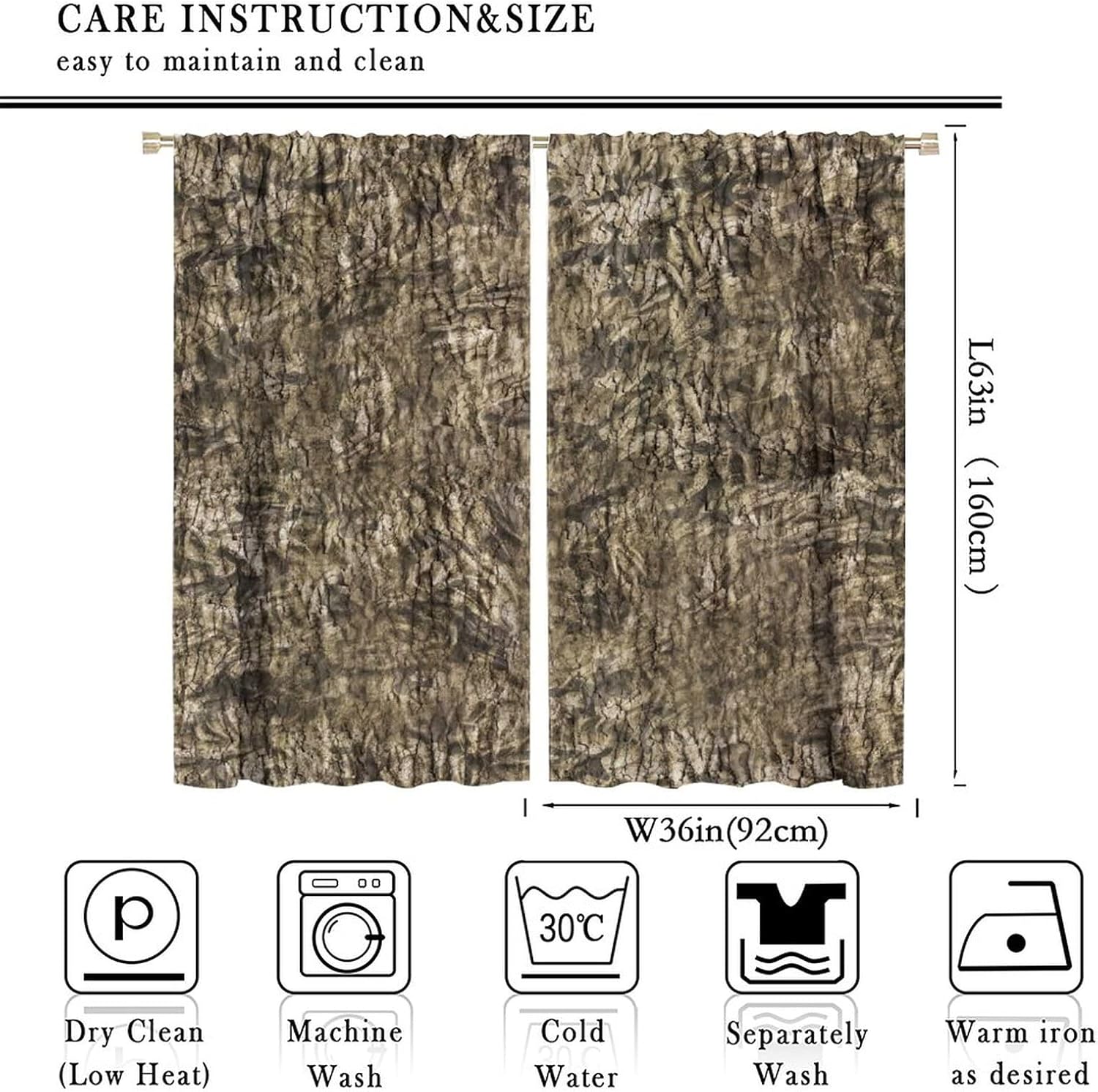 ★Product DesignThe patterned curtain design can not only be your wonderful home decoration for living room, bedroom, kids room, hotel, office, restaurant,cafe or anywhere you want to decorate, but also can be the perfect gift for your kids and friends and neighbors' holidays and birthdays.This window drapes is also suitable for full seasons,Spring,Summer,Autumn and Winter.It also can be used as a gift for your family and friends.They will love it.★Kindly Remind:Generally speaking, the width of curtains should be 1.5-2 times wider than windows.Please measure the windows before buying.Please allow slight deviation for the manual measurement.Due to different light and display, there may be a little color difference.Machine washable in cold water, gentle cycle, tumble dry. Iron at low settings if needed.Any questions or problem, please contact us first. Thank you for choosing our window curtains!