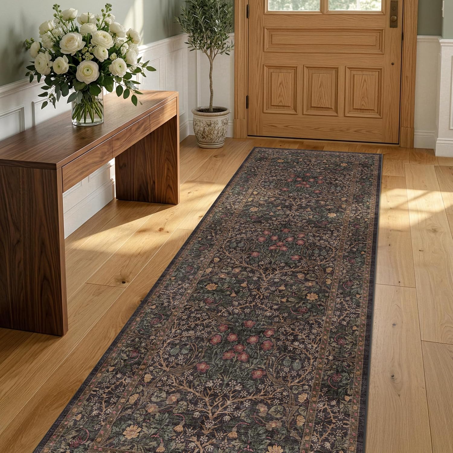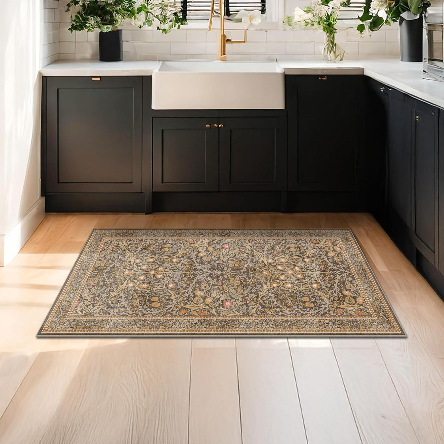 Product description Vintage Botanical Area Rug – Distressed Floral Design, Dark Green, Beige Green, Beige Blue, Dark Blue, Gold Brown BackgroundTransform your living space with the timeless charm of this vintage area rug. Crafted with an intricate floral design, this rug boasts a lush pattern of interwoven vines, flowers, and foliage in subtle hues of green, blue, and beige. Perfectly distressed for a classic look, it evokes the essence of traditional craftsmanship while adding a modern vintage appeal to your home.* Versatile Design: Perfect for a variety of spaces, including bathrooms, entryways, hallways, kitchens, laundry rooms, office chair mats, nurseries, dining rooms, bedrooms, and living rooms.* Durable Construction: Made with high-quality materials to withstand daily wear and tear.* Easy Care: Washable and stain-resistant for hassle-free maintenance. * Non-Slip Backing: Provides a secure grip on your floors, preventing accidents. * Low Pile: Ideal for easy vacuuming and cleaning.* Available in Multiple Sizes and Colors: Choose the perfect size and color to match your decor.Available Sizes:2x6 ft3x5 ft5x7 ft5x8 ft6x9 ft8x10 ft9x12 ft10x14 ftAvailable Colors:Dark GreenBeige GreenBeige BlueDark BlueGold BrownAdd a timeless piece to your home with this vintage Morris area rug, blending classic art and modern functionality. Manufacturer Contact Information 620 Davis St, EVANSTON, IL 60201 US