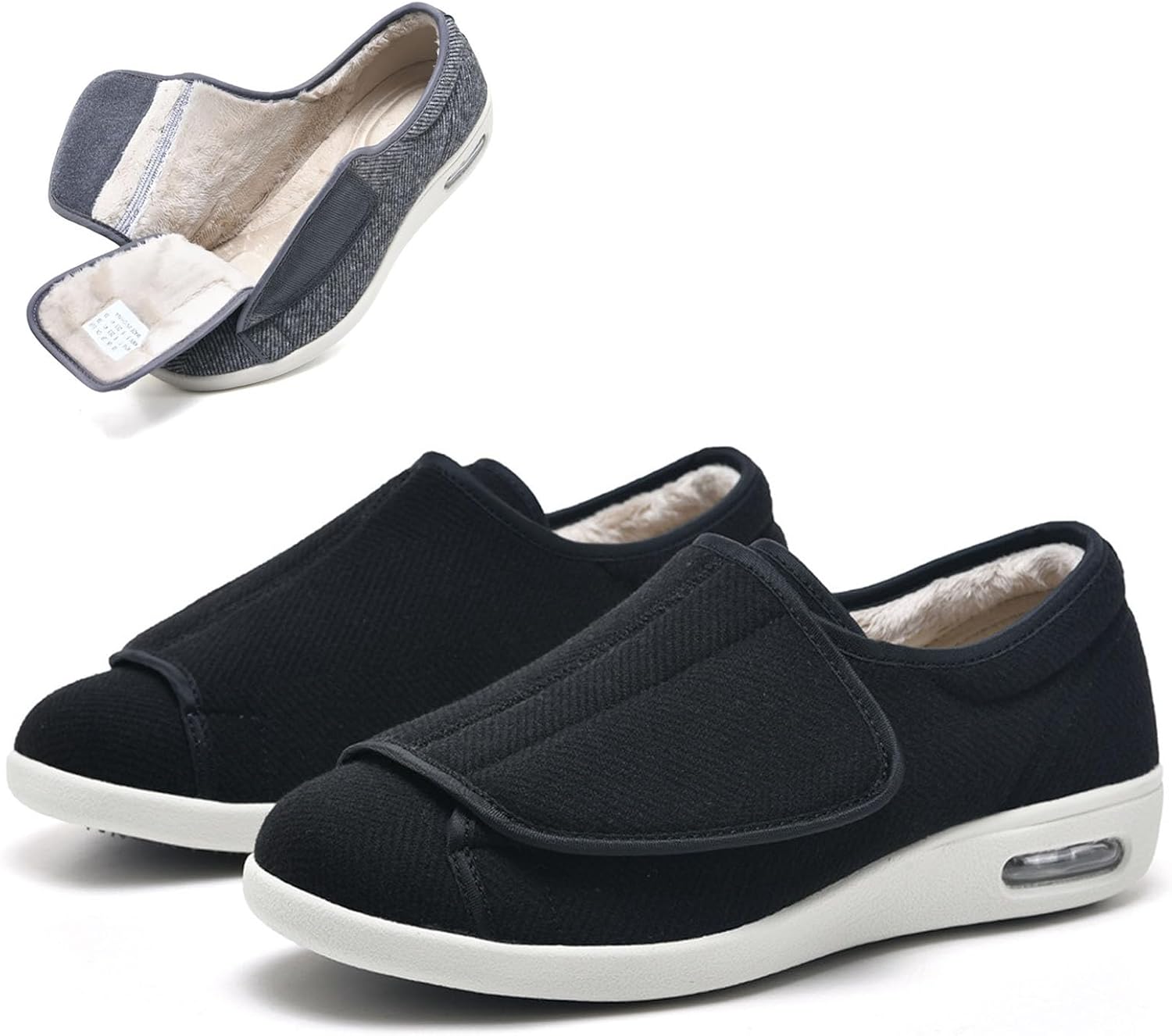 Men's Warm Diabetic Shoes Our winter warm diabetic edema shoe is designed for all types of patients with foot pain or swelling, diabetes, arthritis, edema, hypertension, plantar fasciitis, and middle-aged and elderly people to to develop light and comfortable breathable sports shoes. Specification: -Name: Men's Warm Diabetic Edema Shoes -Material: Durable rubber sole and breathable fabrics Product selling point: 1.Our product features a wide width with double depth, easy to take on and off, lightweight and breathable material provides superior support and a comfortable fit for anyone looking for a comfortable, quality wide walking shoe suitable for a Daily use. 2. Wear and non-slip bottom, increase friction with the ground, walk smoothly. Advice: 1.This product can be hand washable. Machine washing is not recommended, which could deform this product and affect its comfort. 2.For wider feet, we recommend that you choose 1 size larger than the shoes you usually wear.