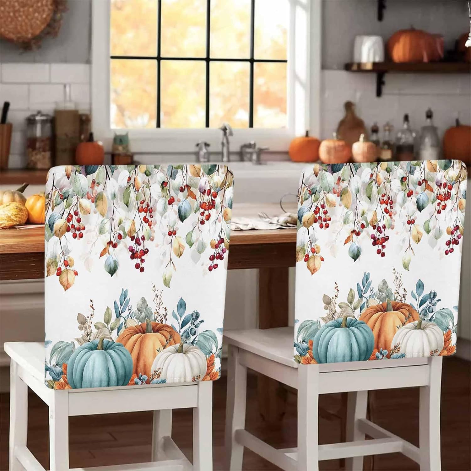 Chair Back Covers for Dining Room Set of 4- Size: 19"x20".- Fabric: Cotton and linen.Multifunctional Chair Cover1.Cover Up Ugly Marks: Patio chair covers are the perfect solution to cover your dining chairs, hiding the scratches/stains/marks on the chairs, so you won't feel embarrassed when guests come over.2.New Look:These casual, comfortable high chair cover restaurant will transform your old chairs into new ones, giving your interiors a new look and saving you the expense of buying new furniture.3.Chair Protector:Accent chair cover cobertores para sillas de comedor protect your dining chairs from stains, dust, food spills and pet damage, extending the life of the chairs, making them ideal for homes with kids, dogs and cats.4.Fit Well:Beautiful wedding chair covers cover para sillas de comedor that is quick and easy to put on (no need to remove existing cushion or seat) and goes easily over chairs without sliding or creeping up.5.Application:Arm chair covers can be widely used in hotels, dinner parties, kitchens, conferences, banquets, ceremonies, dining room and restaurant decorations, etc., adding new life to your chairs while adapting to changing styles.6.Holiday Derations:Dress up the chairs while adding a festive atmosphere. The dining chair seat cover can add charm to holiday decorations such as Christmas/Halloween/Thanksgiving/Valentine's Day/St. Patrick's Day/Easter, making the holidays more beautiful and warm.7.Ideal Gifts:The desk chair covers cubre sillas para comedor is a beautiful gift for birthdays/parties/weddings/baby showers/bridal showers/anniversaries/engagement/housewarming/retirement/graduation and other meaningful days or everyday.Overall, these chair slip cover provide both style and practicality, making them a worthwhile purchase for updating or protecting dining chairs.