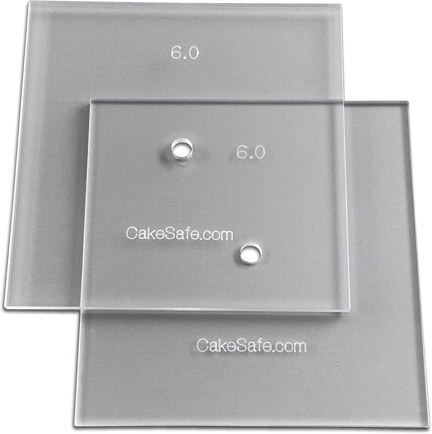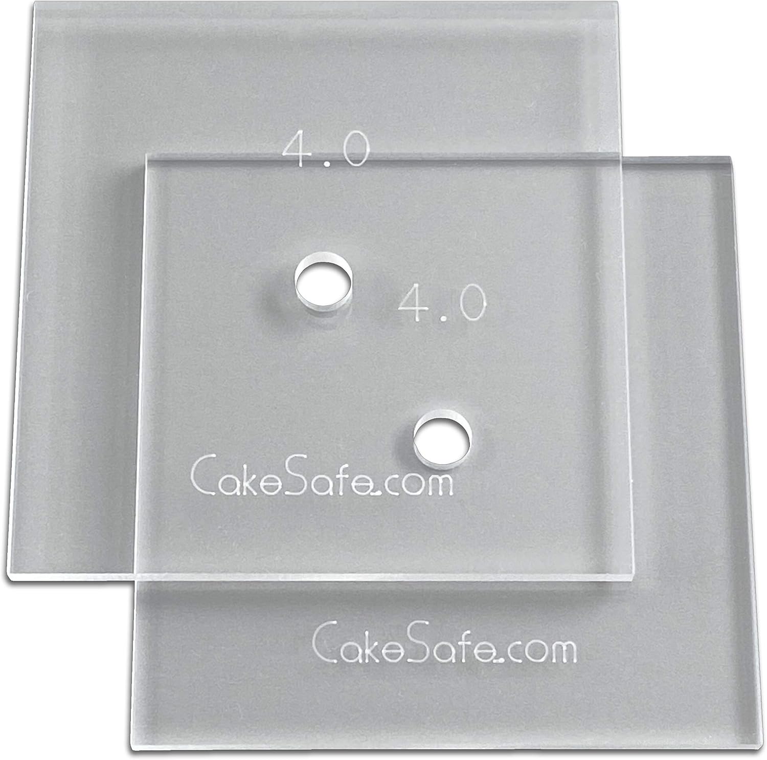 Use the CAKESAFE Acrylic Disks to achieve perfectly crisp edges on each tier. Each disk is also etched with a size marking and line around the edge to help you center your tier. This set of Disks contains two 10.5” Acrylic Disks. The .5” perimeter sizing is most commonly used by bakers who make all buttercream cakes and do not plan to cover their cakes with fondant. In order to determine which size Acrylic Disk is best for your cake, measure your finished cakes and the bottom of your cake pans before ordering. Our general rule of thumb when it comes to choosing the best size Acrylic Disk is: - .5" sizing: For cakes that shrink LESS than 1/8" (or not at all,) AND you are NOT planning to cover with fondant - .25" sizing: For cakes that shrink MORE than 1/8" OR your cakes do not shrink, but you are planning to cover with fondant - .00" sizing: For cakes that shrink MORE than 1/4" OR your cakes do not shrink and you are designing a “naked” cake The 3/8" center hole in all of our Acrylic Disks help bakers to center their cake tiers on the disks by using a temporary dowel as they ice. If you do not chill your cakes before icing with the disks, you will need to put a temporary dowel through the disks and cake to make sure your layers do not shift. The center holes do not affect the performance of the disks, should you choose not to use them. Handle Acrylic Disks with care and hand wash with mild soap.