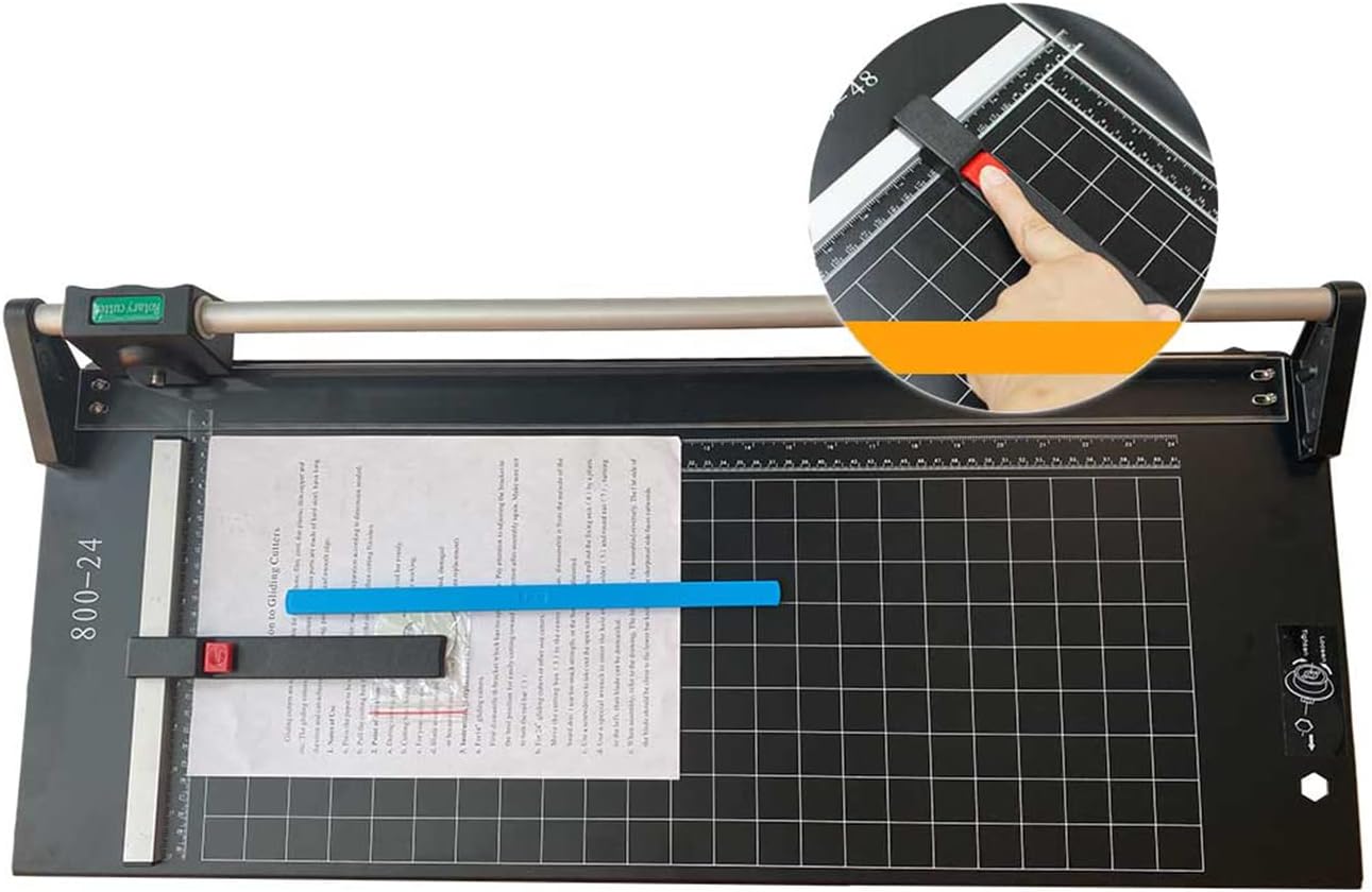 CALCA is originally factory made, Reliable and Long life with quality guaranteed. Easy and quick to install and replace (with professional stuff). CALCA 24 Inch Manual Precision Rotary Paper Trimmer, Sharp Photo Paper Cutter Notices:This rotary paper cutter is used to cut paper within the thickness of 1mm. Its breadth is 24 inch and working table is 800*315mm(32*12in). Description:This rotary Paper Cutter trimmer is all designed with automatically paper-fixing function. The automatically rotary blade makes the cutter sharp and durable. The scale indicating both centimeter and inch makes it more accurate, more convenient, more efficient and more applicable, avoiding the move of paper fixed. There are no rough edges on finished products, which is superior to other normal products with this regards. It is designed with self sharpening and Bi-directional cutting blade, so that the blade can be automatically sharpened, and it's durable. The rotary paper cutter with pre-printed grids signed in centimeter and inch sizes is more accurate, convenient, fast, safe and practical. And the rotary paper cutter is a very good choice for office and home function.Feature: The blade is made of finest steel. Self-sharpening blade cuts in either direction. Grids in both inches & centimeters. Come with rubber feet for desktop use. 1 extra spare carbide rotary blade.Advantage: High efficient, the blade is sharp and cut paper well. Long lifespan, the blade can be used for longer time. Accurate cutting with dual-mode scale, brings good cutting effect without rough edge. The paper cutter is steady on the table for cutting, and it's very convenient to use.Application:This rotary paper cutter trimmer is used for cutting photo paper, graphic photo film, canvas, laminating film, etc. The Paper Trimmer is widely applying to photo studio, photo sticker store, office and so on.