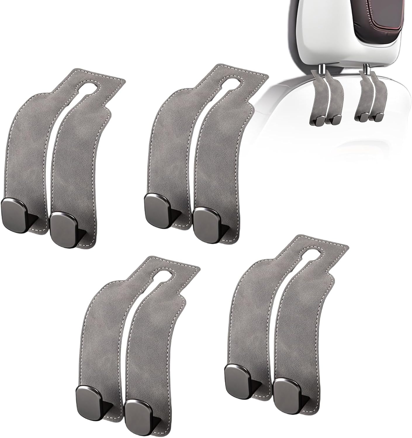 【Universal Headrest Hooks - Fit for All Vehicles】:Designed with flexibility in mind, these leather headrest hooks are a dream come true for all car owners. Their bendable design ensures a perfect fit on any car seat headrest rod, making them compatible with sedans, SUVs, and trucks alike. If you're constantly on the lookout for a “car purse hook” that can adapt to different vehicles, look no further. The hidden, multifunctional design is ideal for road trips or daily commutes. A 2 - pack might be great for a solo driver, while a 4 - pack is perfect for a family car, providing ample storage for everyone's items