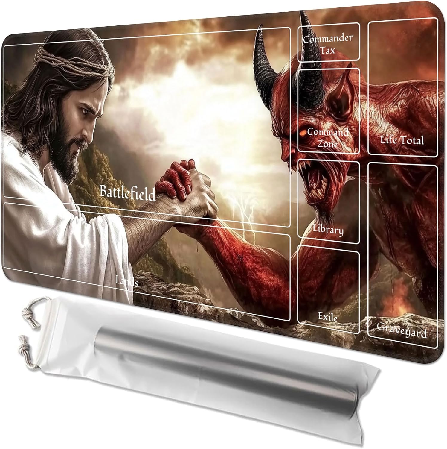 Magic: The Gathering Playmat – Premium Quality, Non-Slip, Durable, Perfect for Card Games Elevate your Magic: The Gathering experience with our high-quality playmat, designed to provide a stable and smooth surface for all your card games. Measuring 24 x 14 inches, this playmat features a card-friendly polyester top and a non-slip rubber backing to ensure it stays securely in place during even the most intense gaming sessions. Key Features: High-Quality Materials: Made with durable, premium rubber and a polyester top for smooth card movement. Non-Slip Backing: Keeps the playmat securely in place, preventing slipping on various surfaces such as wood, glass, and metal. Portable & Convenient: Comes with a storage bag for easy transportation, perfect for gamers on the go. Great for Cards & More: Ideal for MTG, other card games, or as an oversized mouse pad for your PC or laptop. Perfect Gift Idea: A must-have for Magic: The Gathering enthusiasts, offering both protection for your cards and a stylish, functional play surface. Enhance your gaming experience with our premium playmat. Whether at home or on the go, enjoy a stable, smooth surface for your card games. Order yours today and take your MTG sessions to the next level!