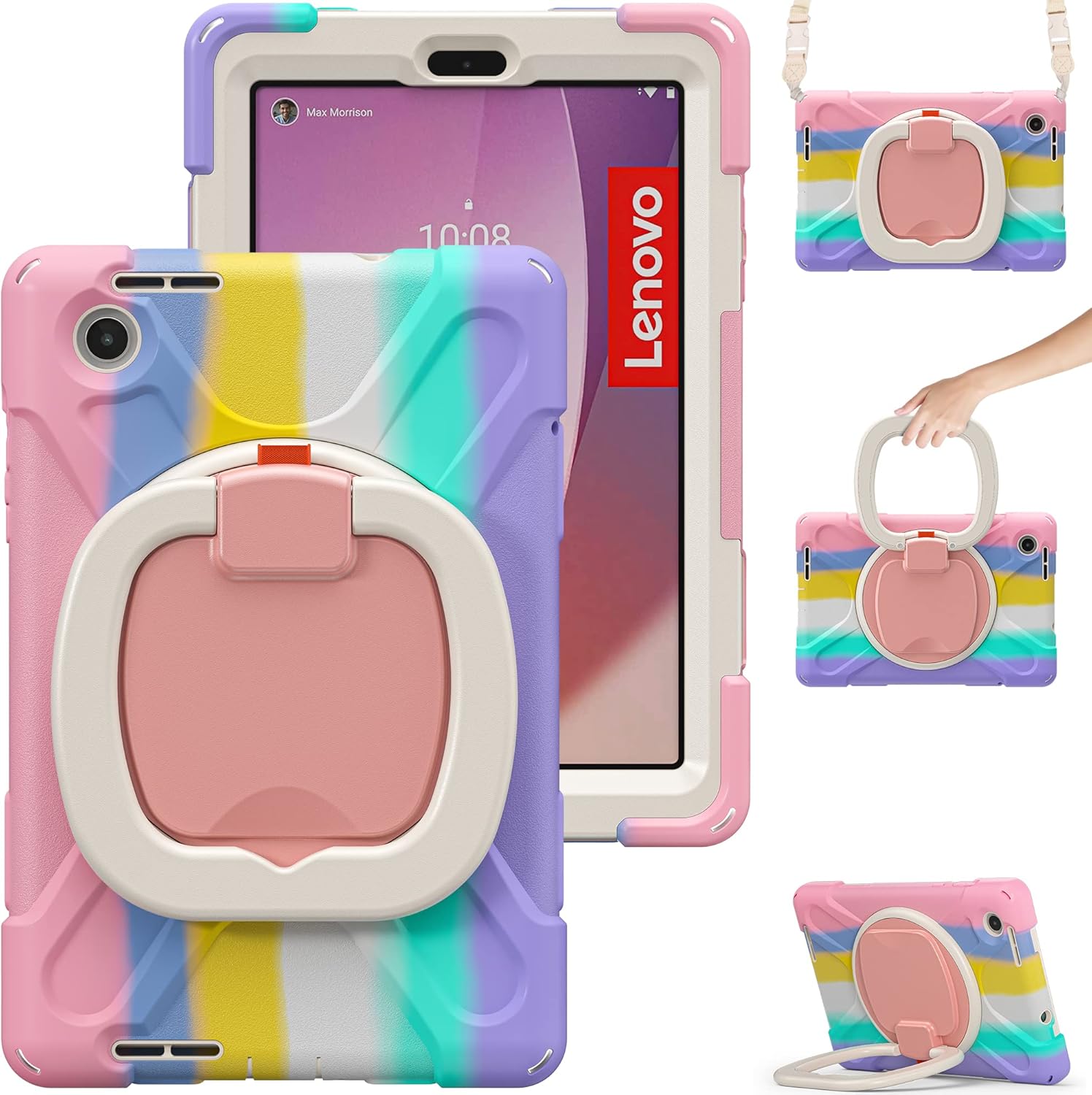 Features:This case is made from high-quality durable silicone for reliable protection, durable and resistant to turn yellow with the time, protects your favorite tablet for Lenovo Tab M8 Gen 4 (8 inch) from accident and impact. It provides full-body protection against scratches and also provides comfortable hand feeling and hassle-free operation. Light-weight and easy to carry, good for daily use and kids.❤Three-layers protective design - Heavy-duty hard-cover anti-shock, shock-resistant silicone exterior cover and inner hard plastic bumper withstand accidental drops and falls.❤Quality Product - High-quality material & craftsmanship with precise cutouts, fulls access to all functions, hassle-free operation. All ports/buttons are covered to keep out dust and debris, easy to install and remove.❤Adjustable Shoulder Strap/Hand Strap - With 360 rotatable handle strap, no-matter child or adult, you can adjust the tightness of the strap easily to hold your tablet compatible with Lenovo M8 (4th Gen). With the shoulder strap, you can easily carry your tablet compatible with Lenovo Tab M8 Gen 4 and hang it anywhere.❤360 degrees rotatable kickstand - Support both landscape and portrait mode, multi-angle viewing, convenient for different needs, good for video watching, working, and typing. Heavy-duty design is suitable for daily use, business purposes, especially for kids.Available in a variety of colors.Compatibility:Compatible with Lenovo Tab M8 4th Gen 8 inchModel: TB-300FUPlease check the model of your tablet before purchase.Package included1 x Case for Lenovo Tab M8 4th Gen(Accessory only, Tablet not included)✦Fits for Lenovo Tab M8 4th Gen 8 inch✦Heavy-duty three-layers protective design, kids safe and friendly✦360 rotatable kickstand with adjustable shoulder strap, hand Strap, and S Pen holder. (S Pen and S Pen Cap is not included.)