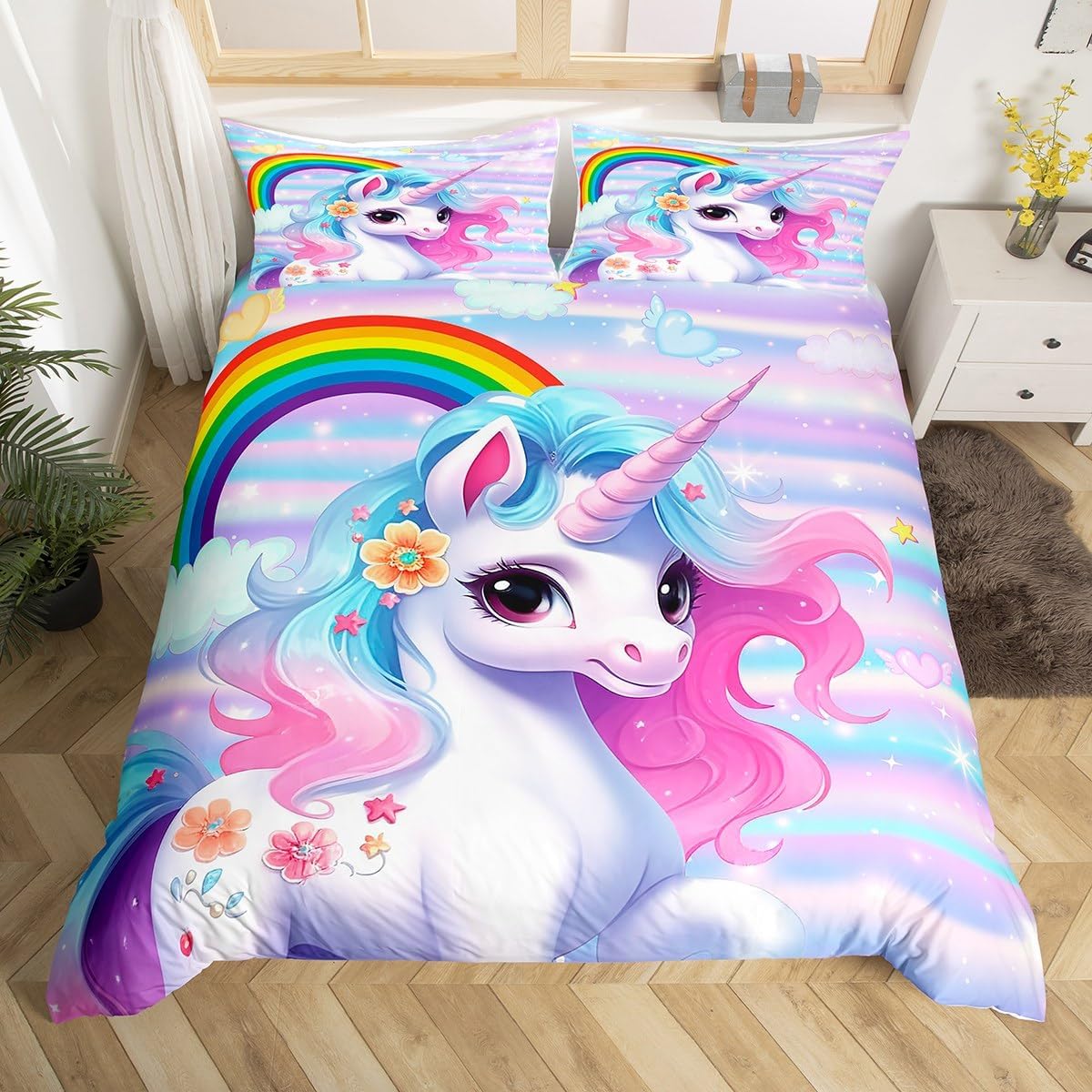 Package Include: Duvet Cover, Pillowcase; High Quality Duvet Cover Set Pattern Bedding Set, simply decorating your rooms any time you want, bringing you fresh feel for year round use. Polyester: Made from polyester microfiber, the sheet set offers strength, natural resistance to shrinking and a noticeably soft hand feel. Size Information: Twin size 2pcs: 1 x Duvet Cover 68" x 90", 1 x pillowcase 20" x 30".Without Comforter. Full size 3pcs: 1 x Duvet Cover 80" x 90", 2 x pillowcase 20" x 30".Without Comforter. Queen size 3pcs: 1 x Duvet Cover 90" x 90",2 x pillowcase 20" x 30".Without Comforter. King size 3pcs: 1 x Duvet Cover 104" x 90", 2 x pillowcase 20" x 36".Without Comforter. Personalize your bedroom: Beautiful design and colorful print, makes your bedroom unique and brings you a wonderful dream. Washing instructions: Machine wash separately in cold water,hang dry, do not bleach. Occasion: The cute soft duvet cover bedding sets designed for Children ,Adult, Men, Women, Teens. This duvet cover set is also suitable for full seasons, Spring, Summer, Autumn and Winter.