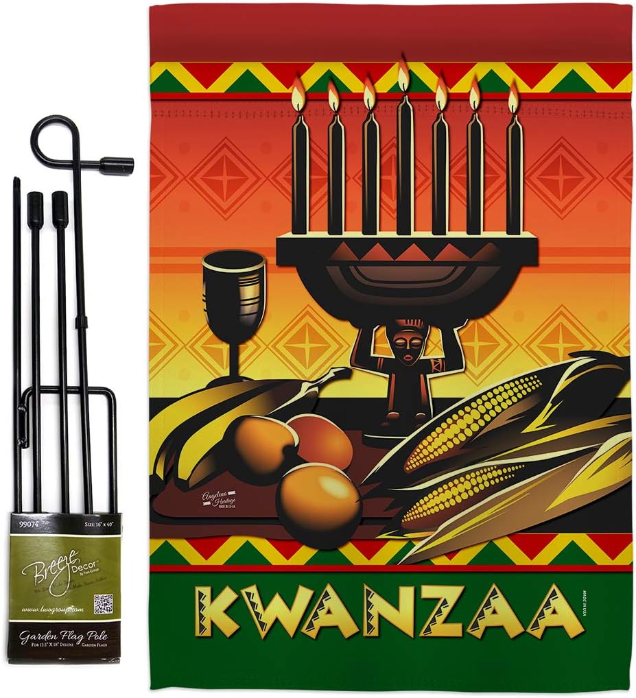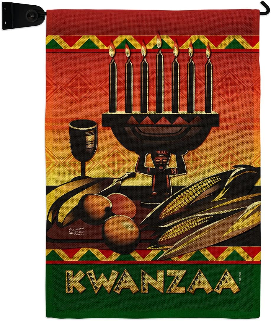 Celebrate Kwanzaa Burlap Burlap Garden Flag Black History Kinara Candles Celebrates African Americans Heritage Small Decorative Gift Yard House Banner Double-Sided Made In USA 13 X 18.5