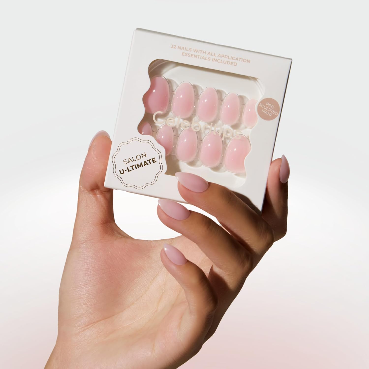 Celebritips Salon U-ltimate: Revolutionary Nail Perfection Our Salon U-ltimate line redefines press-on nails with its unique, salon-sculpted shapes and extreme durability. Wearing them feels like you’ve had a builder gel manicure done by a highly skilled nail technician. The U-edges—the ultra-thin surrounding ends of the nails that touch the natural cuticles—are specially designed to prevent lifting and hair snagging, ensuring a longer-lasting, flawless fit. Crafted from luxury-grade salon acrylic, these nails are reusable, non-damaging to natural nails, and exceptionally comfortable to wear. They can be applied using Celebritips’ Instant Nail Tabs, Super-Hold Nail Glue, or UV Gel Glue, allowing them to last anywhere from 3 to 30 days.