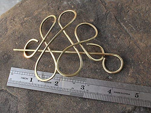 A charm and elegant Celtic hair slide made with 12 gauge solid brass wire, which has been hammered and polished to high gloss.This hair slide also available for antique brass and antique copper. This hair clip seem has elastic,it can be stretch and shrink,so you do not have to worry that you can not use it.It can be stretch to 4"(10 cm). The pin can also be used as scarf pin or sweater pin. I will smooth the end so that it can not hurt your skin or your scarf. It is good idea to treat yourself or as gift. Detail Info: Measurements: Length 3 2/5" and 3" at the widest point. (8.5 cm X 7.5 cm). Fork length is 5"(12.7 cm) Stick can be cut at any length you like,please leave me the length when you place an order,if you do not leave message,I will cut the length I think to suit your size. You can bent it slightly to suit to your hair. It will be come in a beautiful gift box. Care Info: Brass and copper may get dark by time,If you like it,it is good news;If you do not like it,I will send you a polishing block so that you can polish it to the original color. Please Note: All jewelry in my shop are handmade by me,so every piece may have slight variations,which also imbues it with its own unique feature and uniqueness.