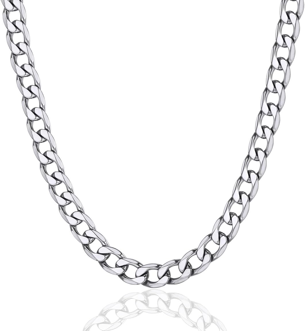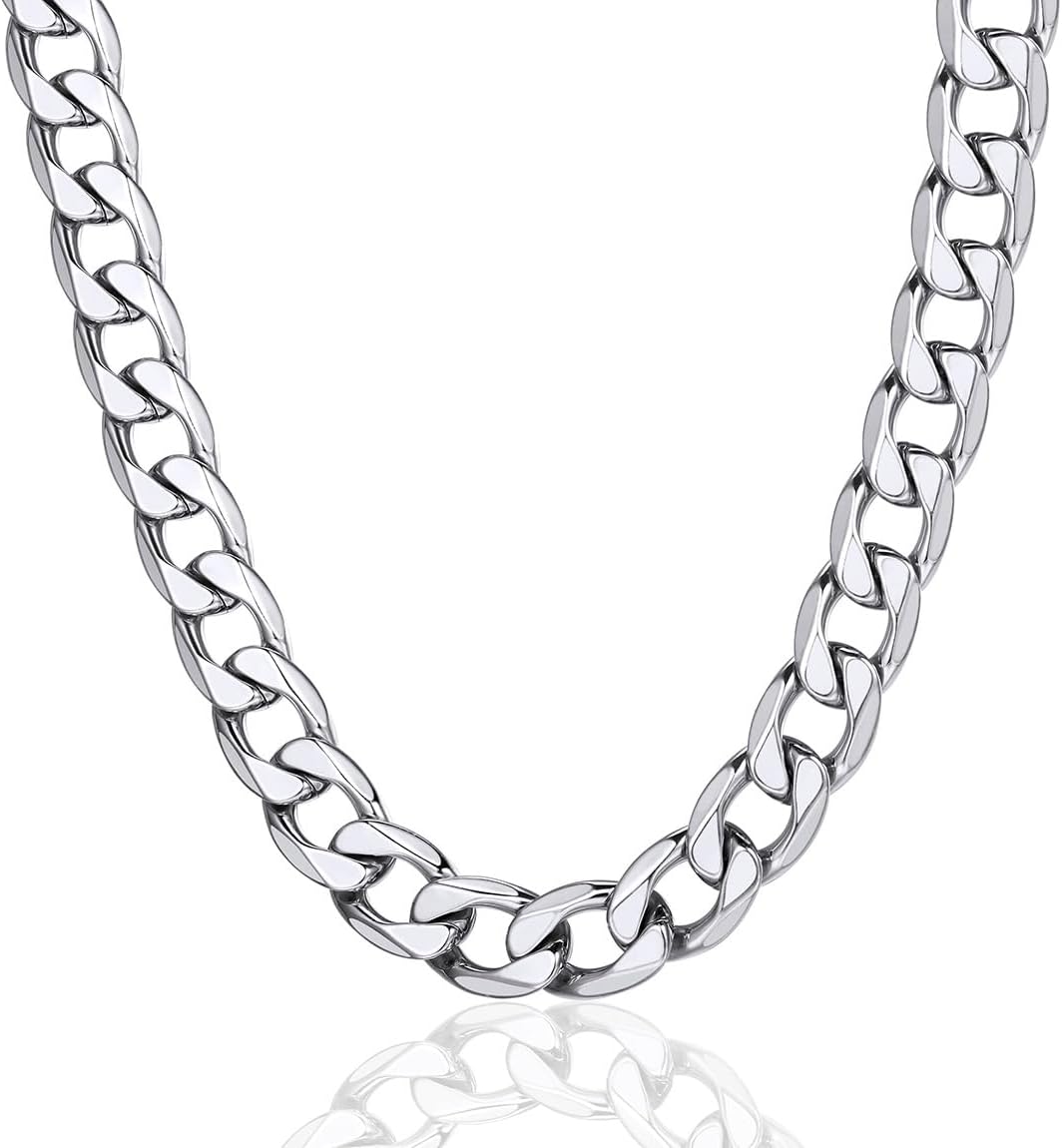 ChainsPro Cuban Chain Necklace for Men, Silver/Black/Gold Plated Stainless Steel Cuban Link Chains Mens 4/6/9/13 MM Width,14"-30" Length Hip Hop Accessories Jewelry Gifts for Father's Day Christmas