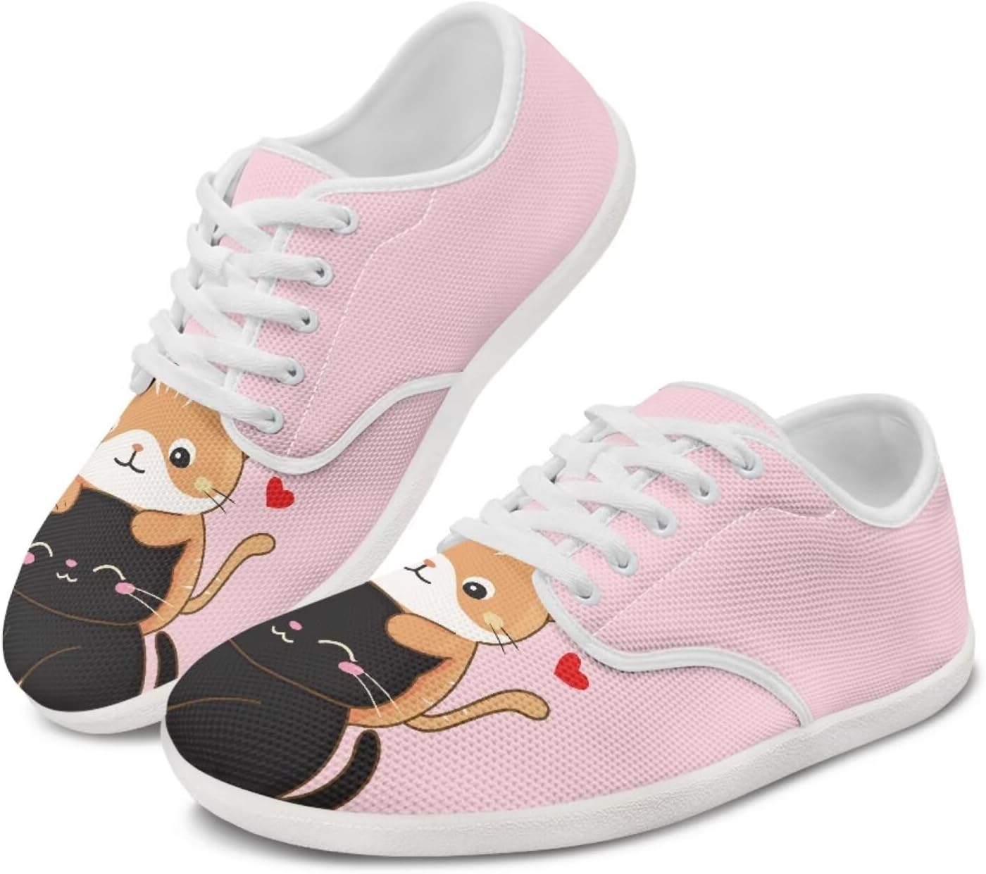 chaqlin Womens Fitness Shoes Non Slip Cat Pattern Low Top Athletic Sneaker Casual Flat Walking Running Tennis Shoe