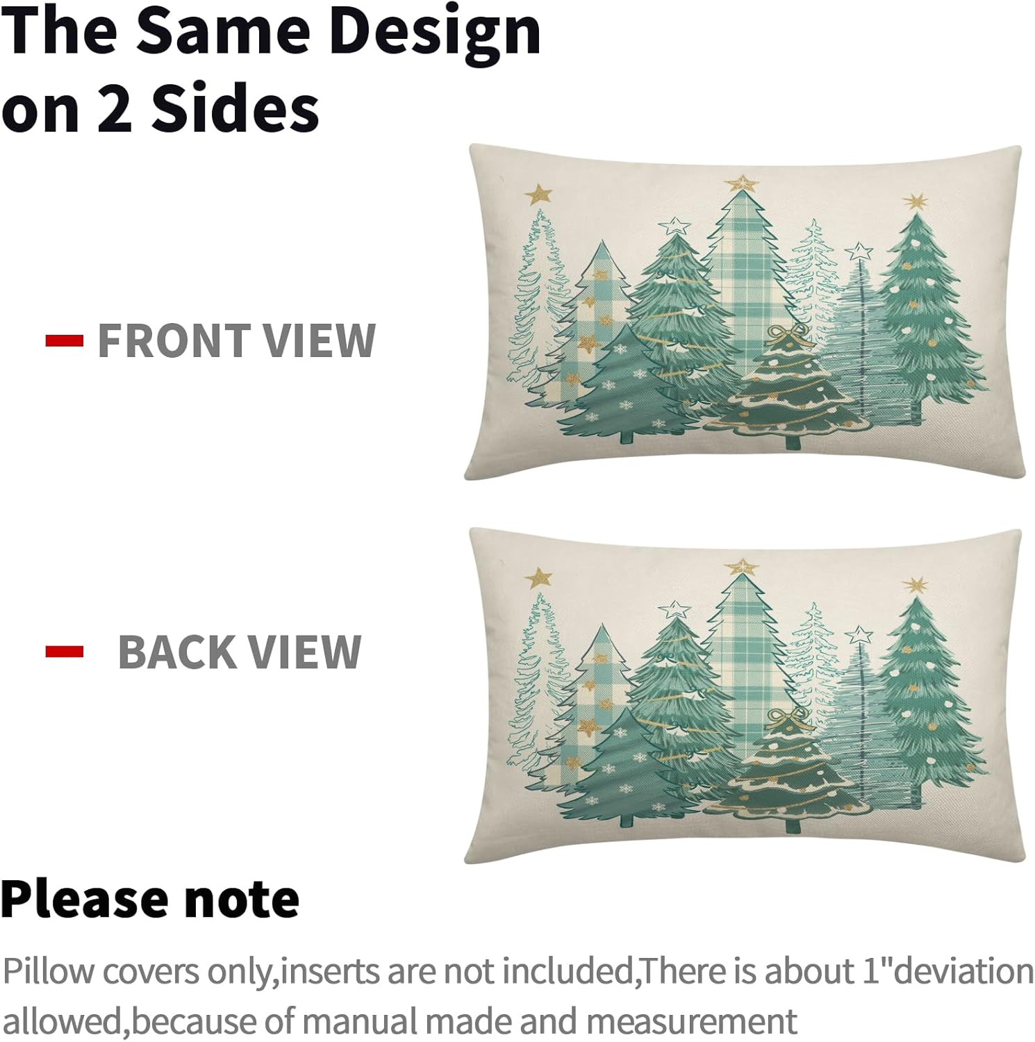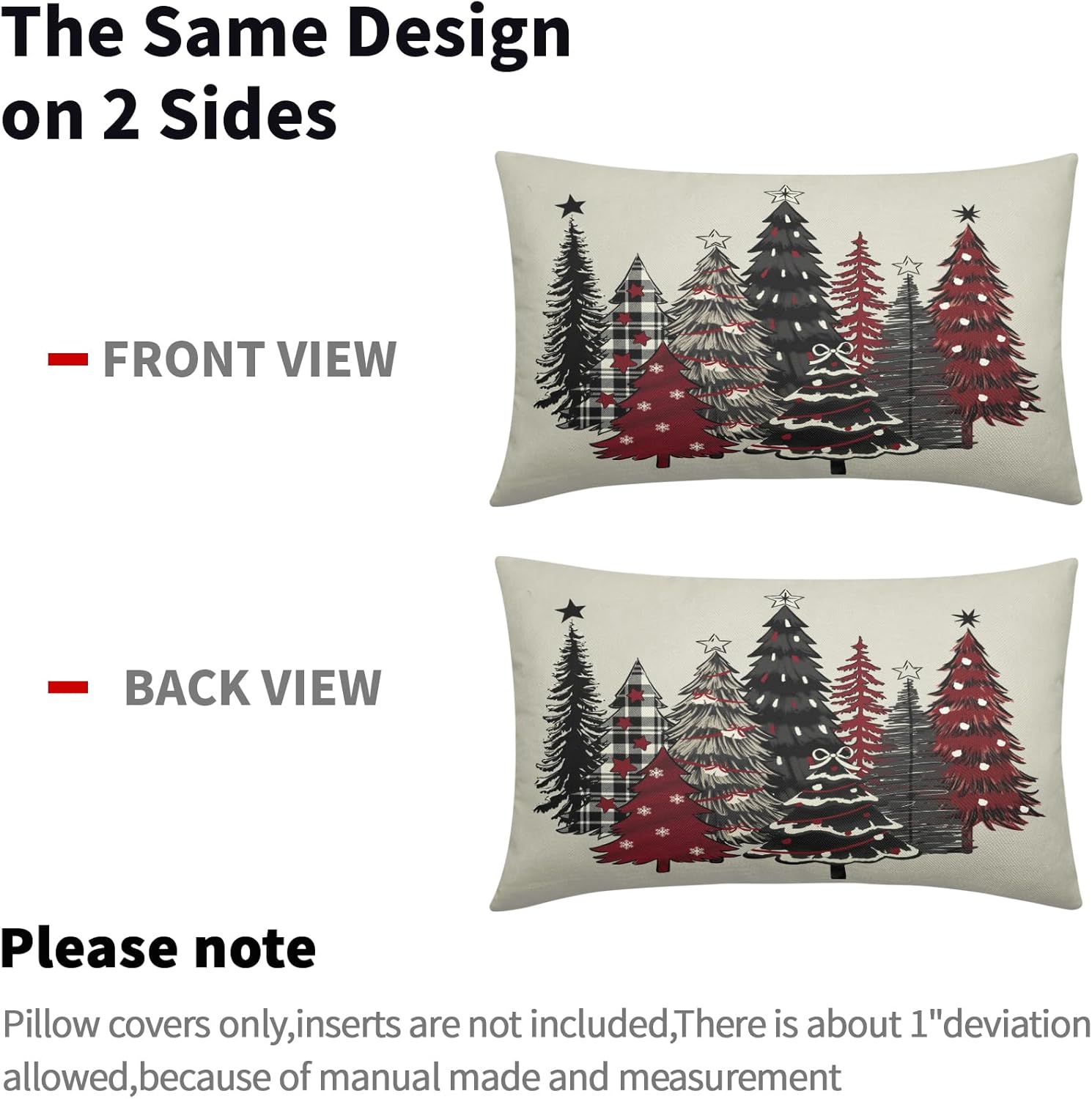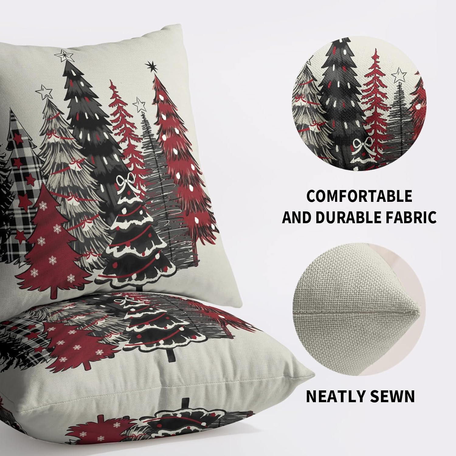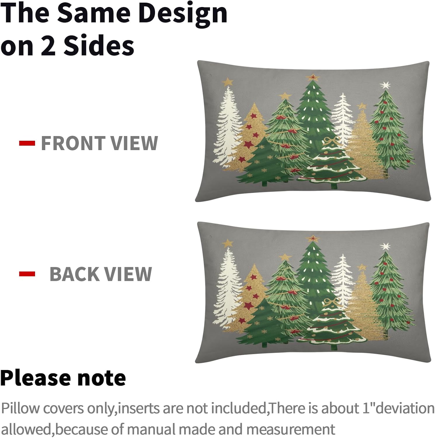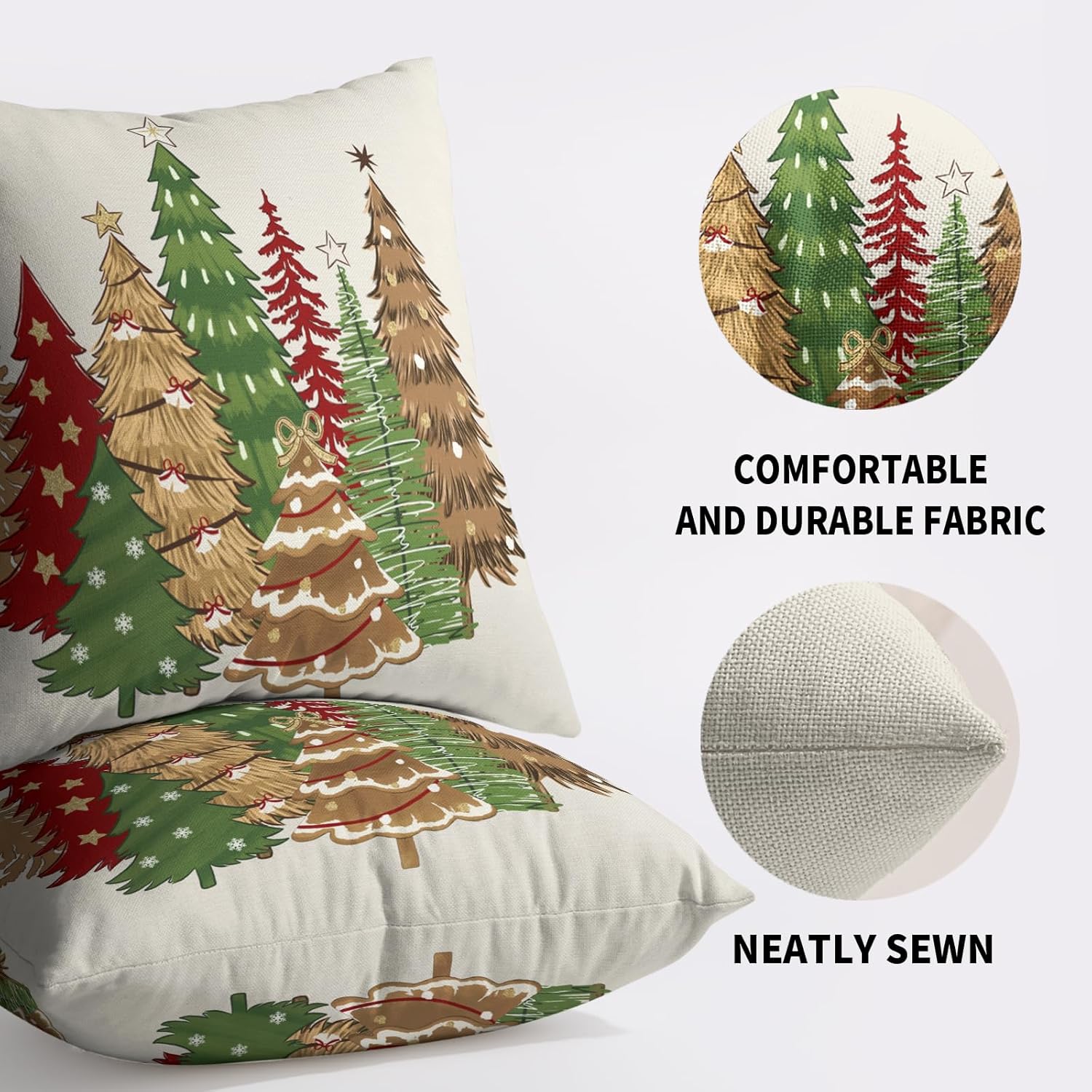 Our decorative christmas pillow covers 24x24 are the perfect decoration for you to prepare for winter and instantly fill your home with a strong xmas atmosphere!These christmas throw pillow covers 24x24 are perfect for decorating home, bedroom, living room, sofa, porch, etc. It can be perfectly matched with various styles of furniture, bringing a beautiful scenery to your home.Our christmas tree pillow cases are made of polyester fabric, breathable, comfortable, double-sided printed, with invisible zippers on one side for easy removal and installation.SpecificationType: Decorative Throw Pillow CoversQuantity: 2 PackSize: 24 X 24 inches/60 cm X 60 cmMaterial: Made of polyesterWashing: Machine washable or by hand, please do not to bleachWarm Tips:Due to different measurement methods, the measurement error of 1-2 cm is within a reasonable range.Due to the brightness of the light, there may be slight color differences between the picture and the actual product.