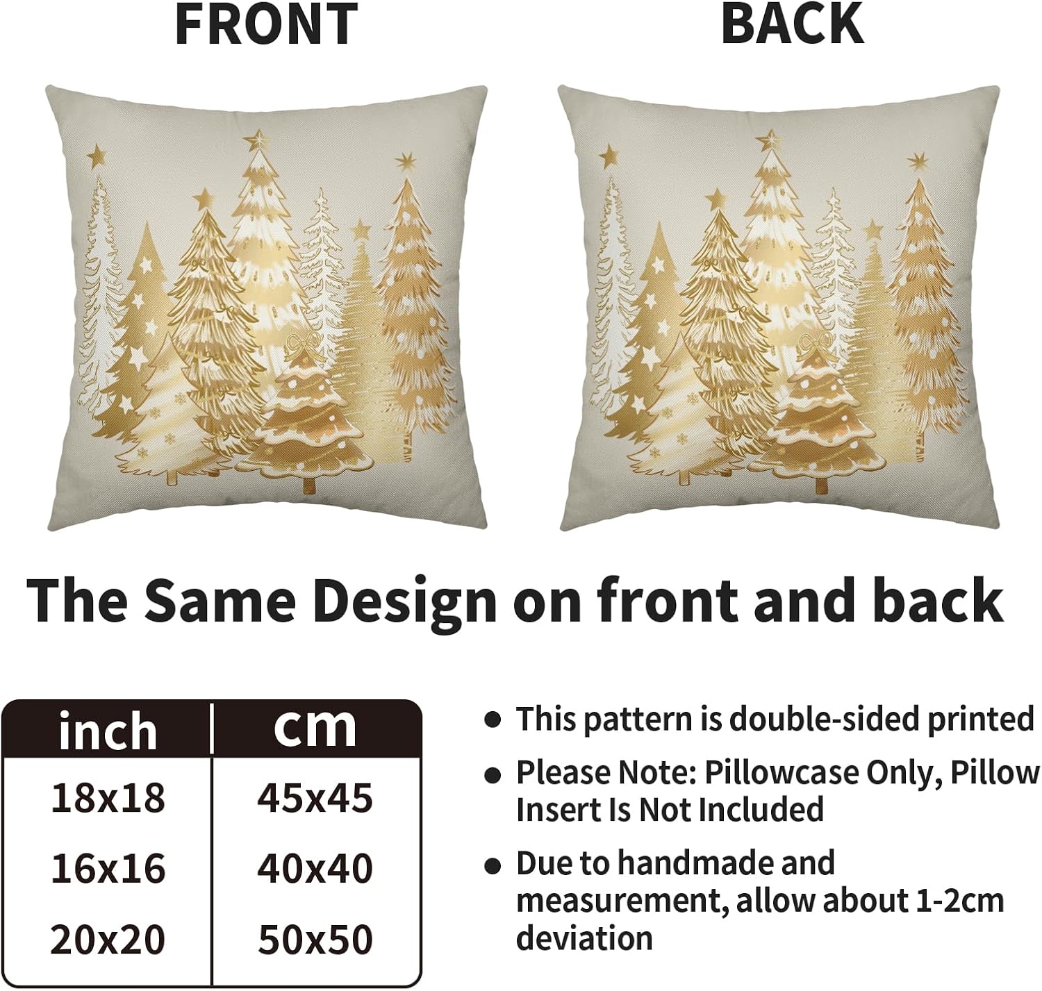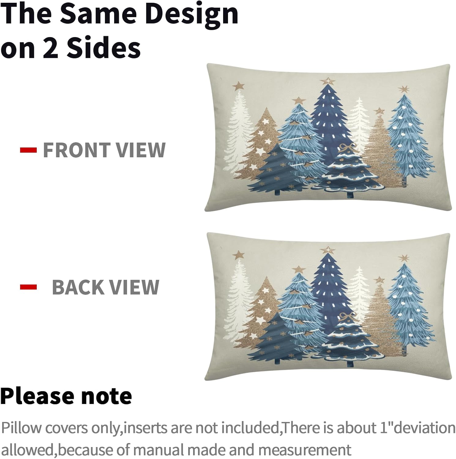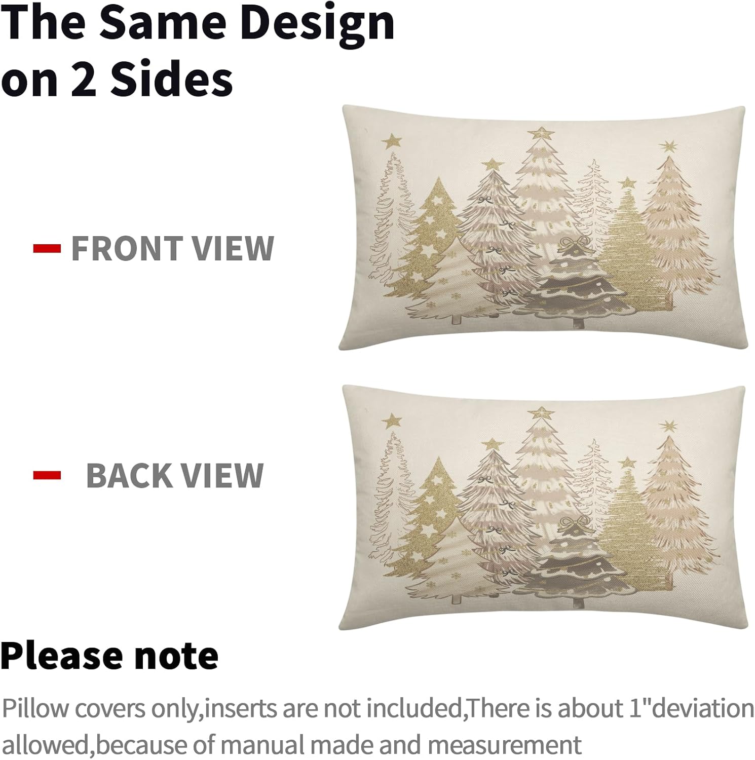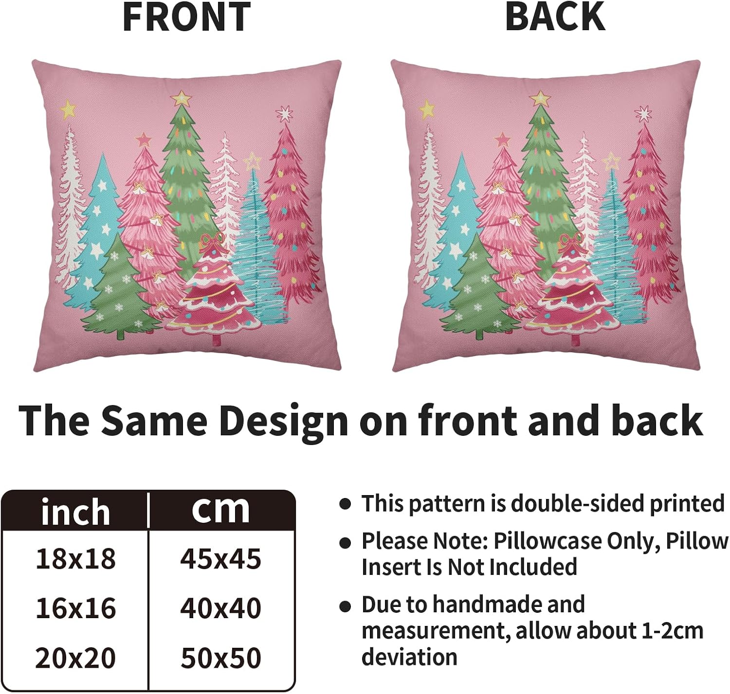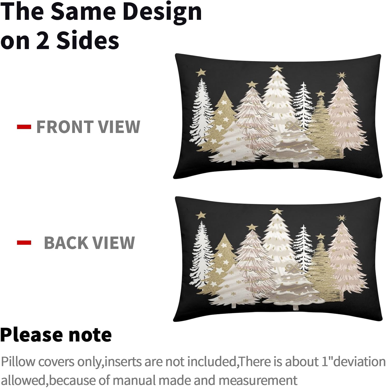 Our decorative christmas pillow covers 24x24 are the perfect decoration for you to prepare for winter and instantly fill your home with a strong xmas atmosphere!These christmas throw pillow covers 24x24 are perfect for decorating home, bedroom, living room, sofa, porch, etc. It can be perfectly matched with various styles of furniture, bringing a beautiful scenery to your home.Our christmas tree pillow cases are made of polyester fabric, breathable, comfortable, double-sided printed, with invisible zippers on one side for easy removal and installation.SpecificationType: Decorative Throw Pillow CoversQuantity: 2 PackSize: 24 X 24 inches/60 cm X 60 cmMaterial: Made of polyesterWashing: Machine washable or by hand, please do not to bleachWarm Tips:Due to different measurement methods, the measurement error of 1-2 cm is within a reasonable range.Due to the brightness of the light, there may be slight color differences between the picture and the actual product.