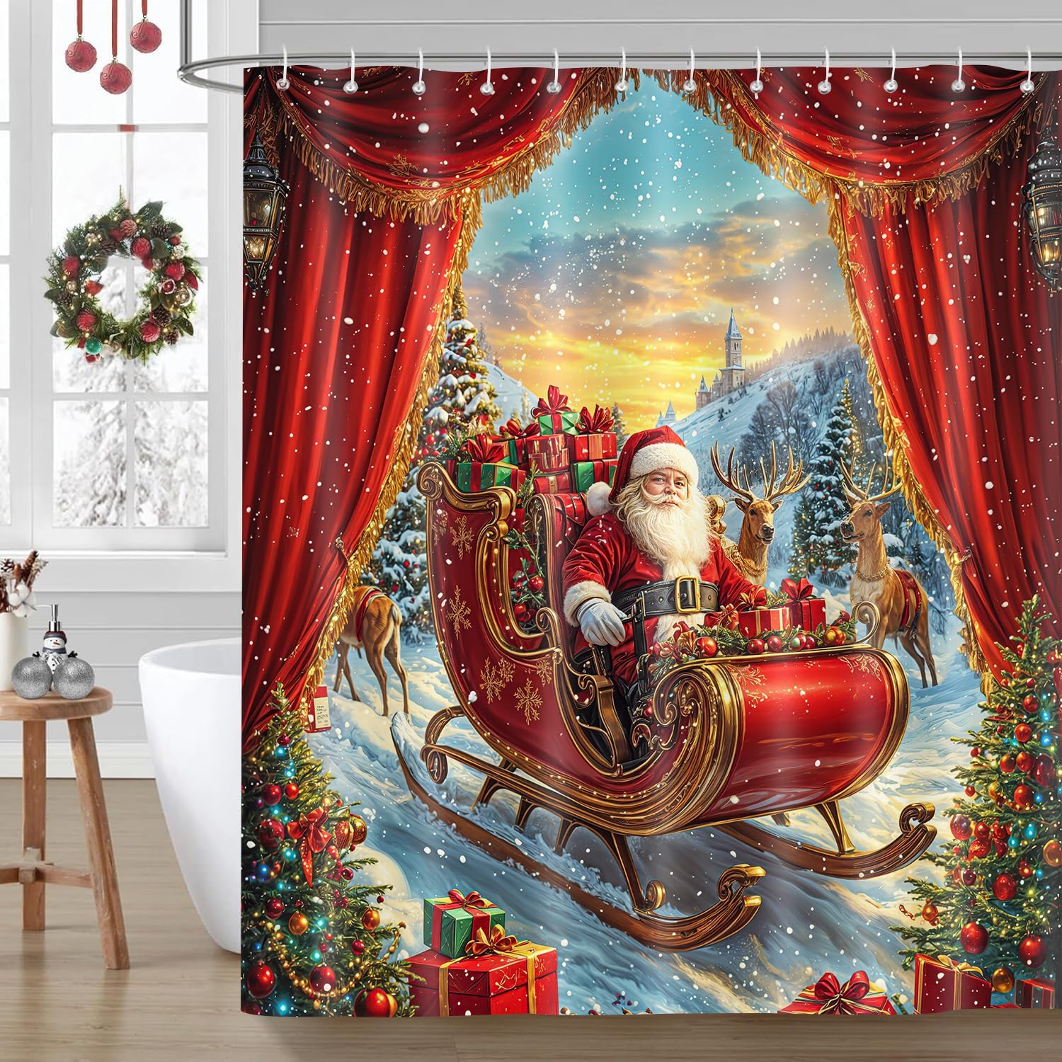Transform your bathroom into a winter wonderland with our delightful Christmas Snowman Shower Curtain. Featuring an enchanting design of charming snowmen amidst a backdrop of serene blue winter snowflakes and rustic pine tree forests, this shower curtain captures the essence of the holiday season. This festive shower curtain is perfect for adding a touch of farmhouse-style holiday décor to your home. The vibrant colors and whimsical artwork will bring joy and warmth to your bathroom, making it a delightful space for family and guests alike. Each set comes complete with easy-to-install hooks, ensuring that you can effortlessly hang your Christmas Snowman Shower Curtain and start enjoying the festive spirit in no time. Whether you're preparing for holiday gatherings or simply want to embrace the season's charm, this shower curtain is an ideal addition to your decor. Give your bathroom a cheerful makeover this holiday season with our Christmas Snowman Shower Curtain – where functionality meets festive flair! Perfect for gifts or personal use, it's a must-have for anyone looking to celebrate the holidays in style.