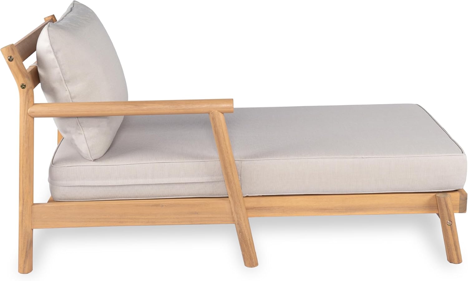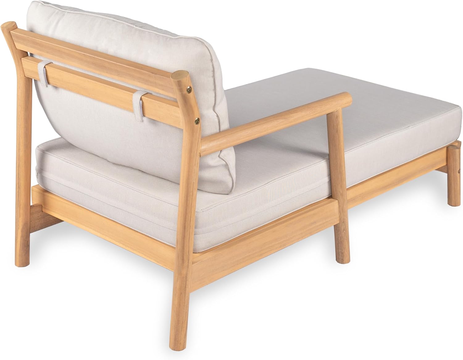 This outdoor L-shaped sofa combines modern design with exceptional comfort, making it the perfect centerpiece for your patio or garden. Crafted from durable, weather-resistant materials, it withstands sun, rain, and wind while providing a cozy seating area for family and friends. The spacious L-shaped configuration offers ample seating and encourages socializing, whether you're hosting a summer barbecue or relaxing with a book. Cushions are made from quick-dry, UV-resistant fabric to ensure long-lasting color and comfort. Elevate your outdoor living space with this stylish and functional L-shaped sofa that brings both elegance and practicality to any outdoor setting.Material: Acacia WoodLeg Material: Acacia WoodL ShapedAssembly RequiredChaise Lounge+Loveseat