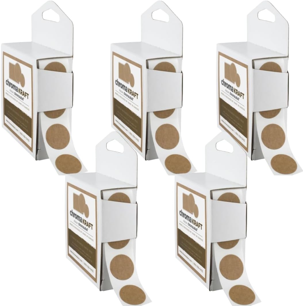 ChromaLabel’s 1/2 inch round kraft dot stickers are the perfect solution for all your labeling, crafting, and organizational needs. With a permanent adhesive, these high-quality kraft stickers stay securely attached to various surfaces. Whether you’re marking small items, sealing tissue paper, or using them as price stickers for your products at farmers’ markets, these versatile dots provide both practicality and a rustic aesthetic. Each dispenser box contains 1000 stickers, making them a convenient and cost-effective choice for crafts, pricing, and decoration. Proudly made in Kansas, USA, ChromaLabel products offer premium quality and craftsmanship for every project.