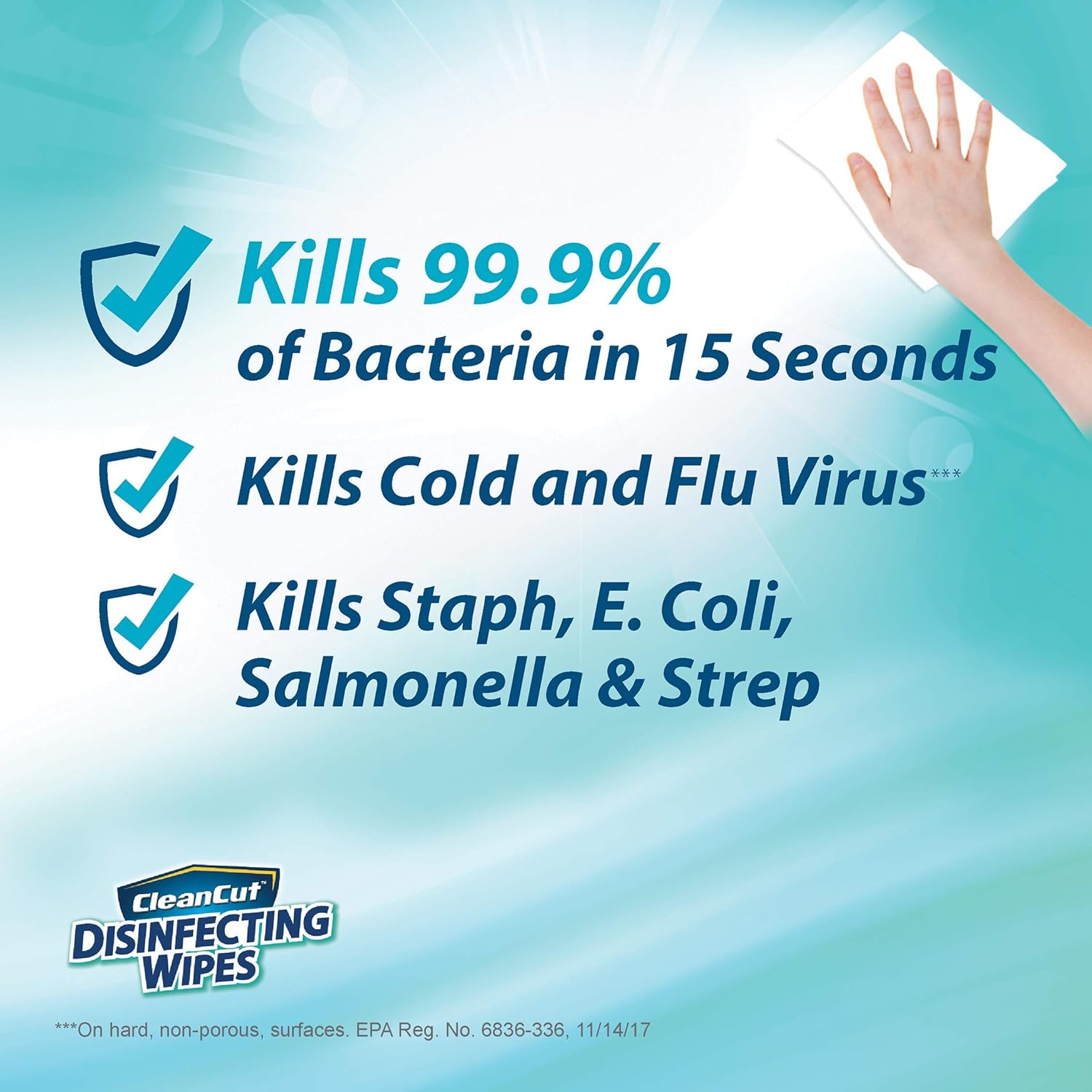 Clean Cut Disinfecting Wipes quickly neutralize common household germs, tackling tough grease and grime while trapping hair, lint, and dust for a fresh, thorough clean. They target cold and flu strains like H1N1 and H3N2, making them ideal for hard, non‑porous surfaces. The quick‑drying formula leaves no sticky residue or streaks, making these wipes perfect for sanitizing everything from kitchen counters to keyboards and touchpads.