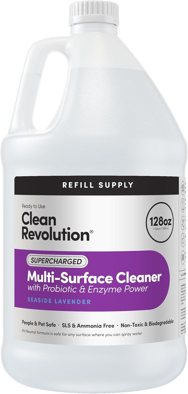 • POWERHOUSE FORMULA: Clean Revolution Multi-Surface Cleaner features a tough and effective PH Neutral formula that’s safe for any and all surfaces where you can spray water, easily eliminating grease, grime, food stains, soap scum and hard water spots