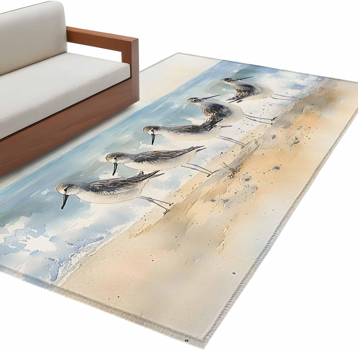 Coastal Seagull Rug Washable Soft Non-Slip Low Pile Lightweight Designed to turn ordinary room into living spaces full of warmth, softness and style that our personalized rug mat Deisgn: By nature and geometric, each indoor floor carpet for bedroom with elegance and creativity. The modern patterns rugs for bedroom gives your home charm. Whether it’s the first thing you see in the morning or the comfort under your evening tea, the rugs for bedroom transforms every moment into something beautiful. Soft Rug: We believe luxury should feel effortless. That’s why our bathroom rugs are made from premium low-pile fibers that are soft and easy to maintain. The kitchen rugs surface feels velvety underfoot, offering a cozy embrace with every step. The kitchen rug mat with sturdy weave ensures long-lasting even in high-traffic areas. Designed for families, pets and busy lifestyles, the large rug perfect balance of strength and softness. Perfect Fit for Every Room: Use as classroom rug, laundry room rug, throw rugs, rug for dorm and indoor outdoor rugs to define a cozy living room, warm up a bedroom, brighten a hallway, or bring softness to a nursery Easy to Clean: The washable living room rug makes care simple. The stainresistant rug makes you can easily vacuum for everyday upkeep or machine wash for a deep clean. The washable rug for living room are no fading, no shedding. Specification: From round (3ft, 4ft, 5ft, 6ft, 7ft, 8ft) to rectangular (2x3ft, 4x6ft, 5x8ft, 6x9ft, 8x10ft), the foldable rug is designed to fit any room. Small Rug: Ideal for Entryway Entrance Indoor Doormat Runner Rug: Suitable for Kitchen Hallway Bathroom Bedside Large Rug: Perfect for Bedroom Living Room Office Dining Room Classroom Dorm Nursery Laundry