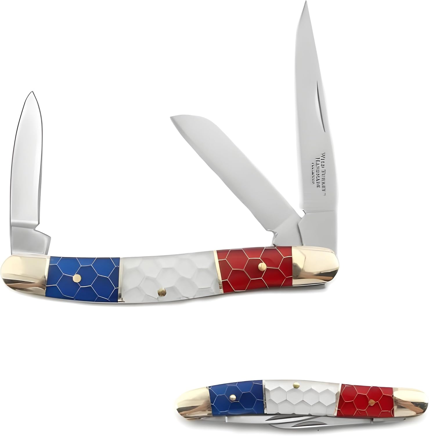Old Ram Manual folding Gentleman's Three blade Stokeman Knife8-Inches Overall length of knife when opened3" , 2" 3CR13 Stele Blade Respectively 3.5-Inches Black And Brown composite handles with Brass Bolster & Pins