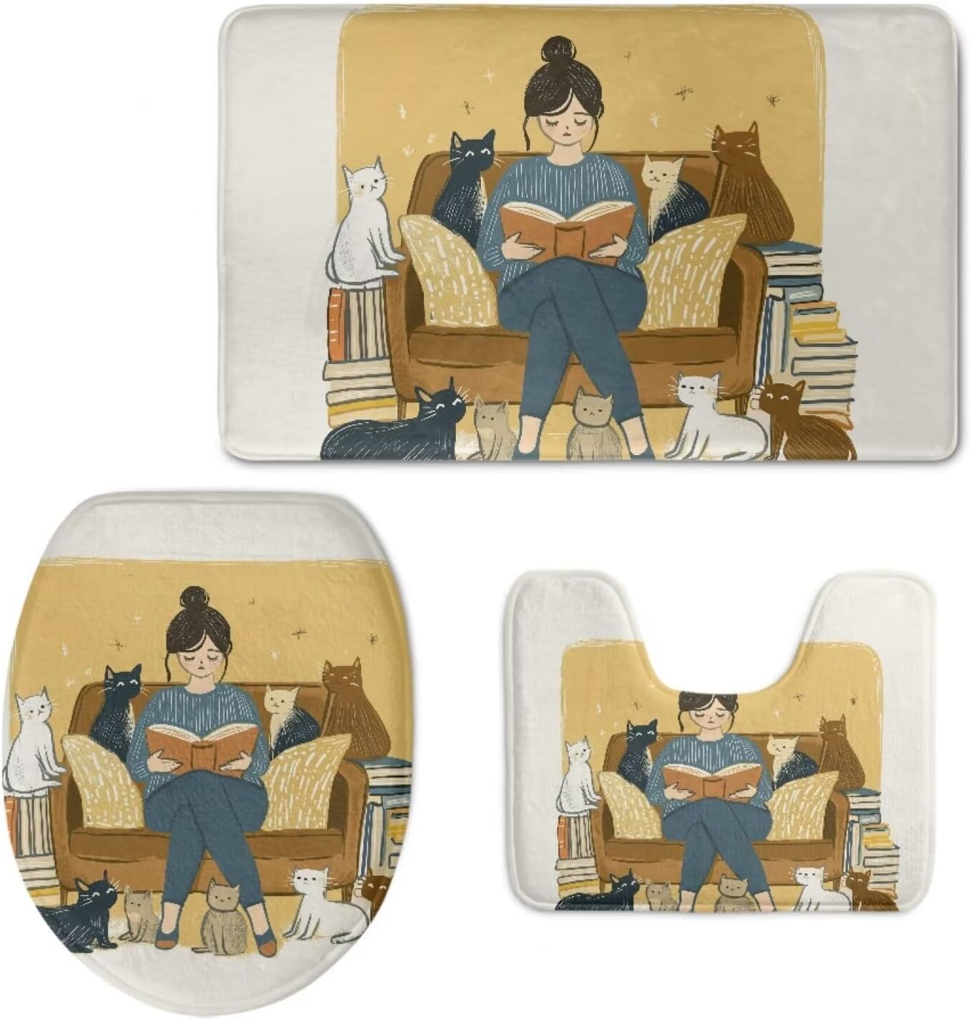 -Using high quality flannel and rubber material,lightweight,breathable,comfortable, machine Washable, easy to clean -Soft flannel surface which is great comfortable for your walking also with the ability of water absorption. -The floor mat suit for the Entrance Door,Bathroom,Coffee Table,Dining Table,Study Room,Kitchen,Bed Room,etc. -Package:Includes 1* bath mats +1 * U shaped contour toilet mats + 1* toilet lid cover. -Personalized vivid 3d printed pattern, simple personalized but beautiful,bright pretty colors decorate your bathroom/home better.