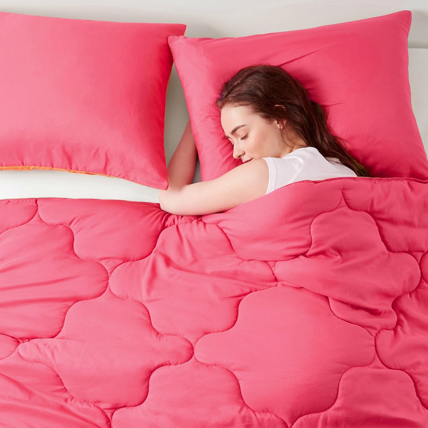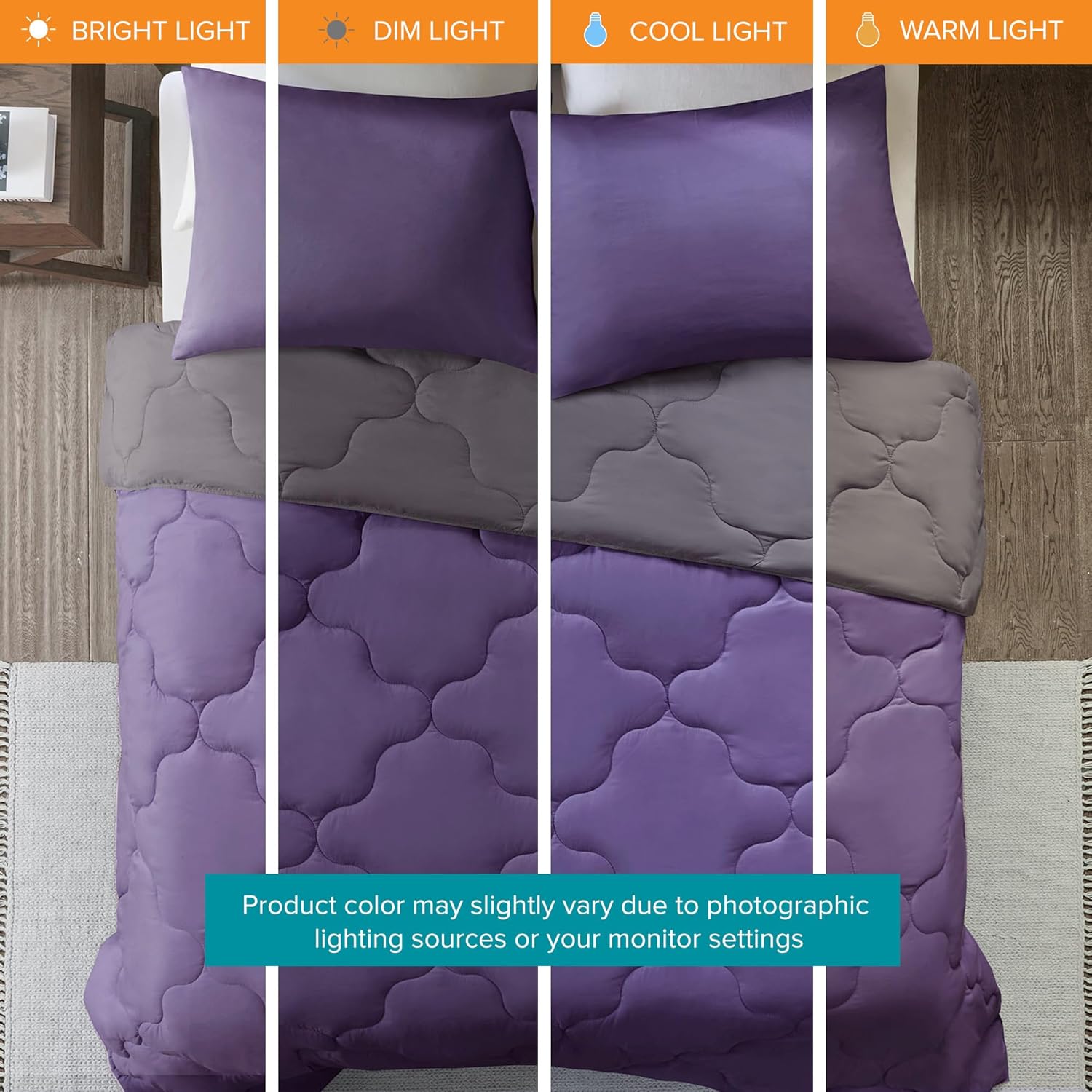 Get the Vixie reversible down alternative comforter set by Comfort Spaces. Turn the comforter on either side for the contrasting color of your choice. It is quilted in a fun geometric pattern, perfect for a college dorm or as an update to your home bedroom. This set includes 1 comforter and 2 matching shams (1 sham in Twin/Twin XL).This set arrives vacuum packed, follow care instructions to fluff before use. Choose from Twin/Twin XL or Full/Queen in a variety of colors.