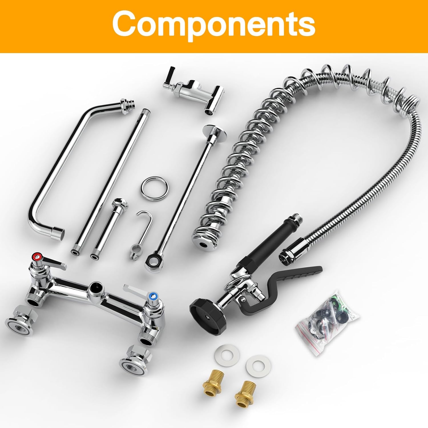 | Included Components | 12 Inches Swing Spout,Pre Rinse Sprayer, 38 Inches Stainless Steel Hose with Spring, A Bag of Gaskets, Faucet Body, Wall bracket,Riser Pipe,Tee Pipe |
