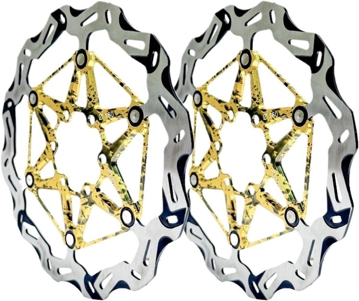 Spider material: aluminumDiameter: 160mm/180mm/203mmThickness: 1.95mmRecommended brake pads: organic / semi-organic (resin)Technology/Features: Two-piece constructionColor: gold, silverWeight weighed: 160mm---123g, 180mm---158g, 203mm---200gCenter lock 160mm----133g, 180mm--168g, 203mm--211gType : Disc BrakeModel Number : YOD4Size : 160mm/180mm 6 holesUse : Mountain Bikes,Road BicyclesMaterial : Light Alloy
