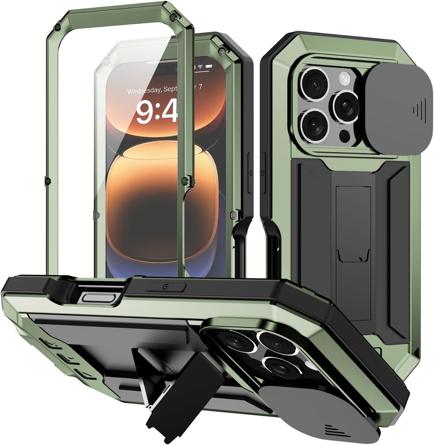 1.【Compatibility】 Heavy Duty Military-Grade Metal Case, Compatible with iPhone 17 Pro(2025 Model). Features a robust metal frame, soft shock-absorbing inner core, non-slip skid pads, impact-resistant bumpers, and honeycomb cushioning lining for comprehensive device protection. 2.【Superior Impact Resistance】 Engineered with a protective metal frame and shock-absorbing silicone, combined with full screen and camera coverage, to effectively guard against impacts, drops, and scratches. Excellent dust and splash resistance makes it the ideal choice for harsh environments and outdoor work. 3.【All-in-One Design: Tempered Glass + Rotating Lens Cover & Stand】 Equipped with upgraded, durable Gorilla Glass screen protector – scratch-resistant, anti-oil, anti-fingerprint. Innovative 180-degree rotatable lens cover doubles as a sturdy stand: Flip closed for scratch-free lens protection (sleek, minimalist look); flip open for hands-free viewing during videos, calls, or online learning. 4.【Military-Grade Certified Protection (MIL-STD-810H)】 Constructed with a triple-layer defense of hard metal and soft rubber. The shock-absorbing inner shell and reinforced corners work synergistically to deliver top-tier drop protection exceeding military testing standards (MIL-STD-810H), safeguarding your device. 5.【Built for Ultimate Protection】 Designed for users whose phones face frequent drops, harsh conditions, or who need to avoid costly screen repairs/replacements – including outdoor enthusiasts, cyclists, truck drivers, and construction workers. We are committed to providing an indestructible safeguard for your device.