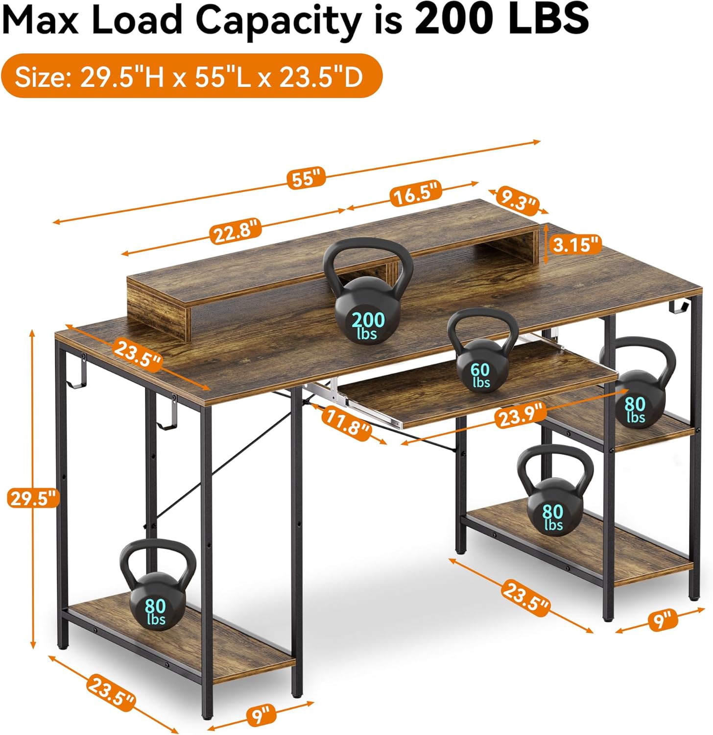 | Item Type Name | Computer Desk with Keyboard Tray and Storage Shelves and Monitor Stand |