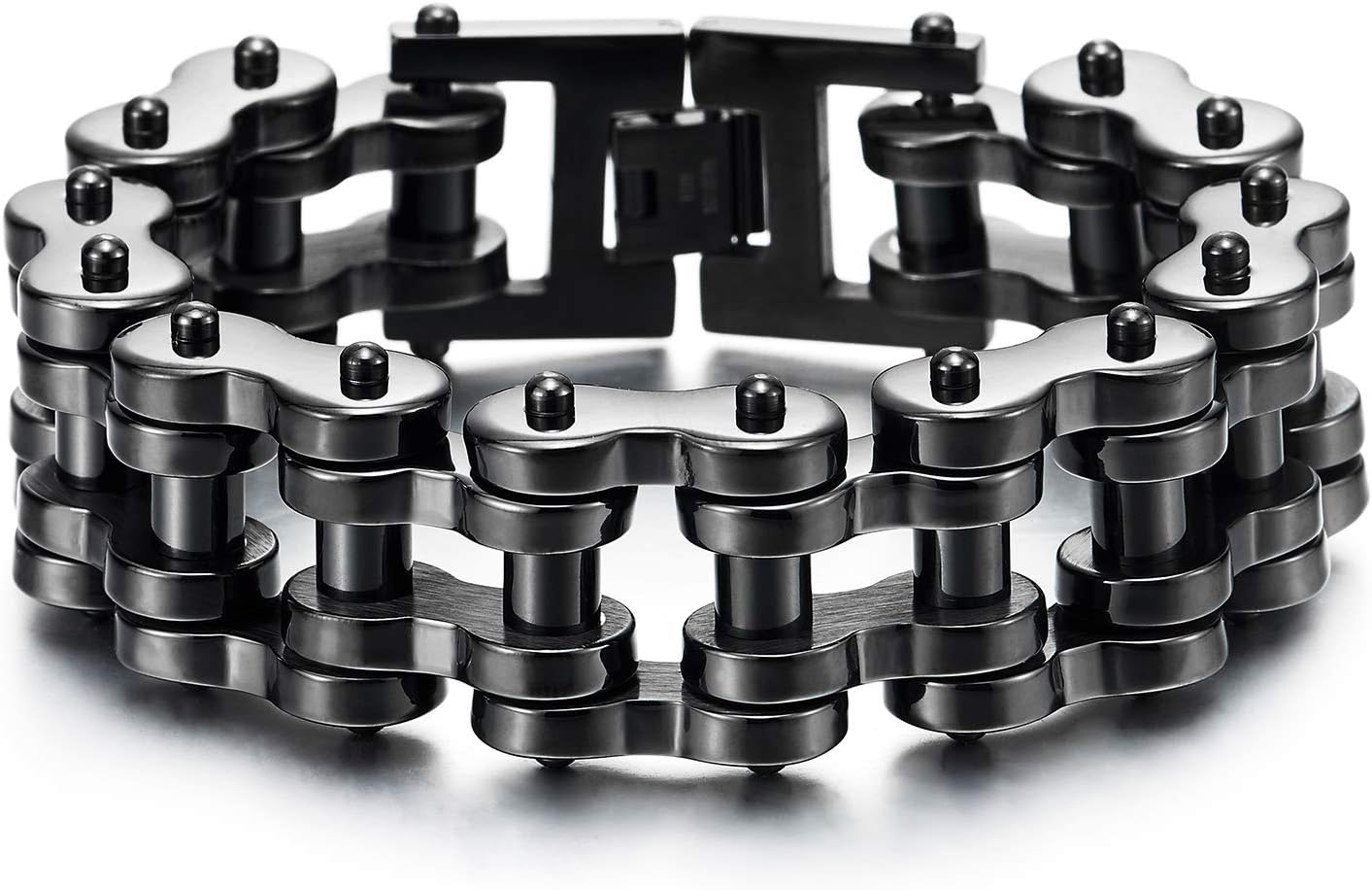*Metal:Stainless Steel *Metal Color:Silver*Finishing:Polished*Dimension:length: 23CM(9.06");Chain Width:2.2CM(0.87")*Weight:201g *Metal Color:Black & Silver*Finishing:Polish*Dimension:Chain length:23CM(9.06");Chain Width:2CM(0.79")*Weight:149g *Metal Color:Black*Finishing:Polished*Dimension:Chain length:22.5CM(8.86");Chain Width:2CM(0.79")*Weight:208.7g *Metal Color:Silver & Gold*Finishing:Satin and polished *Dimension:23.5CM(9.25")long x1CM(0.39")thick x2CM(0.79")wide;*Weight:152g *Metal Color:Gold*Finishing:High Polished*Clasp:Fold-over clasp*Dimension:1.9CM(0.74")wide x 23CM(9.0")long x1CM(0.39")thick; *Weight:147.7g *Metal Color:Black-01*Finishing:polished*Dimension:23.5CM(9.25")long x1CM(0.39")thick x2CM(0.79")wide;*Weight:146.8g *Metal Color:Silver & Black*Finishing:Polished and Satin*Dimension:23CM(9.06")long x1CM(0.39")thick x2CM(0.79")wide;*Weight:148g *Metal Color: Black-01 & Silver*Finishing:Polished and Satin*Dimension:23CM(9.06")long x1CM(0.39")thick x2CM(0.79")wide;*Weight:146.8g *Metal Color: Old Metal*Finishing:Polished and Blackened*Dimension:Chain 23CM(9.06");Chain Width:2CM(0.78")*Weight:150.9g *Metal Color:Blue*Finishing:Polished*Dimension:Chain length:23.5CM(9.25");Chain Width:2.1CM(0.83")*Weight:148.6g *Metal Color:Gold & Silver*Finishing:Polished*Dimension:Chain length:22.5CM(8.86");Chain Width:2.1CM(0.83")*Weight:147g *Metal Color:Silver & Gold-01*Finishing:Polished*Dimension:Chain length:23CM(9.06");Chain Width:2.1CM(0.83");Weight: 145.7g