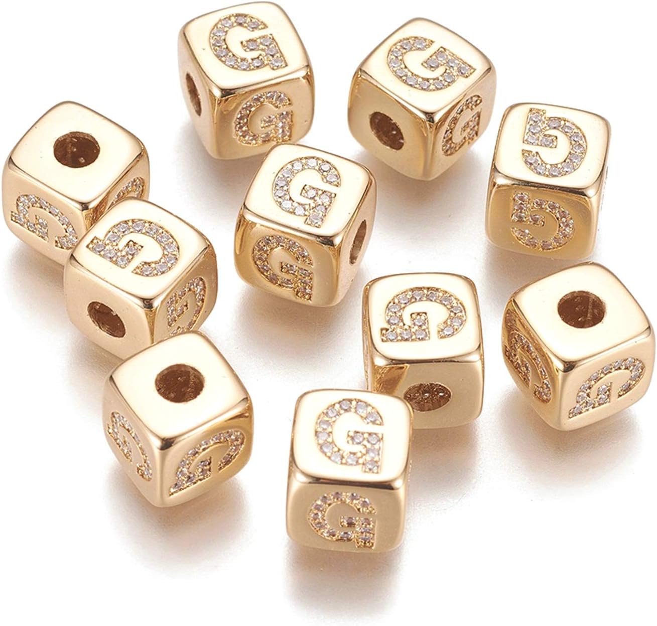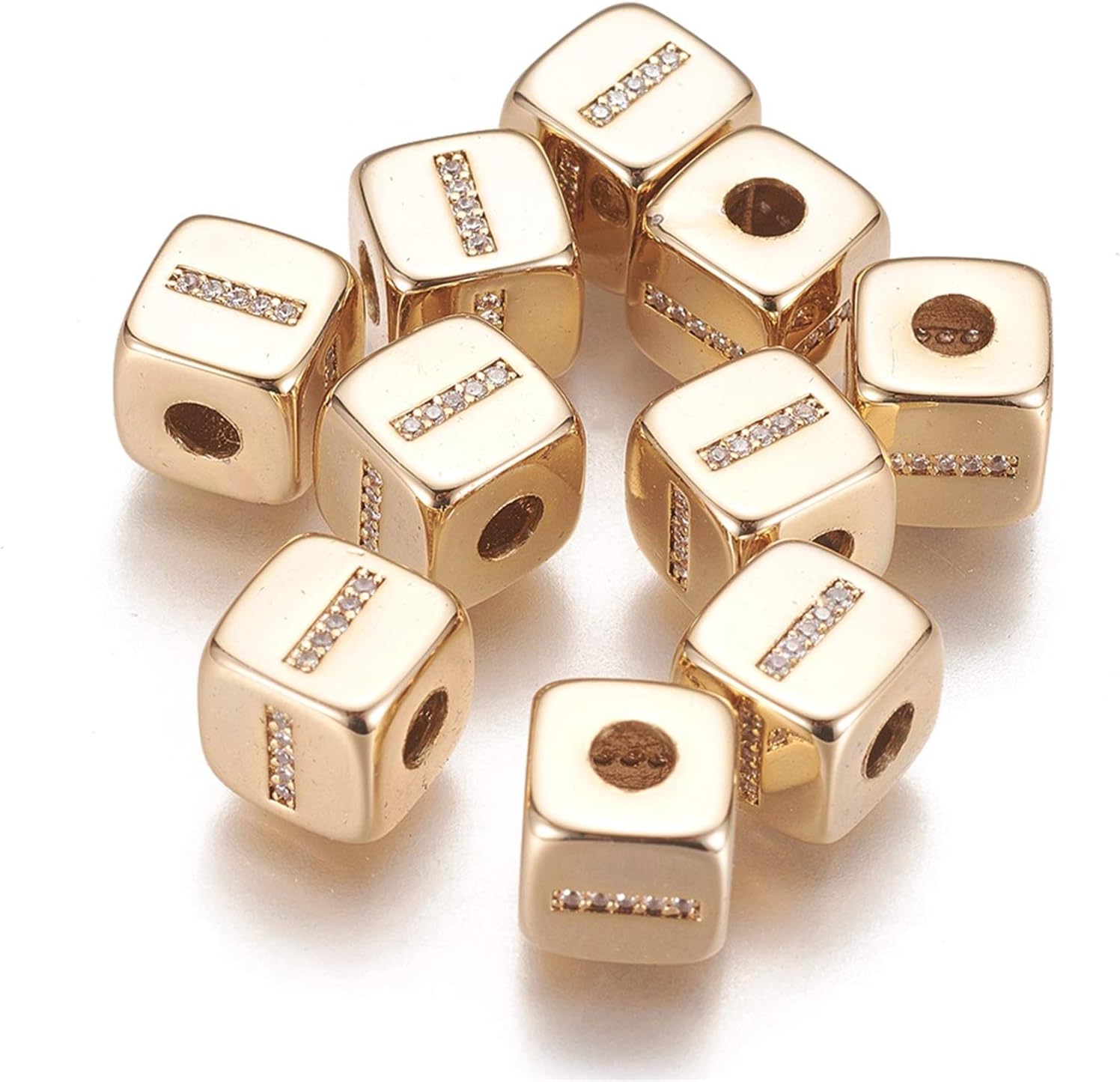 Micro Pave Cubic Zirconia Large Hole Spacer Beads, Quantity: 9pcs Color: Golden Measurement: about 0.35 inch(9mm) wide, 0.35 inch(9mm) long, 0.37 inch(9.5mm) thick, hole: 0.18 inch(4.5mm), 9 styles, 1pc/style, total 9pcs; Plastic Bead Containers: about 2.68x2.05x0.43 inch(68x52x11mm), 1pc. These pony solid beads with decent texture and and bright color are eye-catching. They are very nice for craft or jewelry design. Also the beautiful colors will let your design be more wonderful!Small but exquisite beads are widely used in all kinds of jewelry designs. You can try them on a dangle of DIY earrings, or combine them with other beads to be necklaces, friendship bracelets, chokers, key chains, ect.