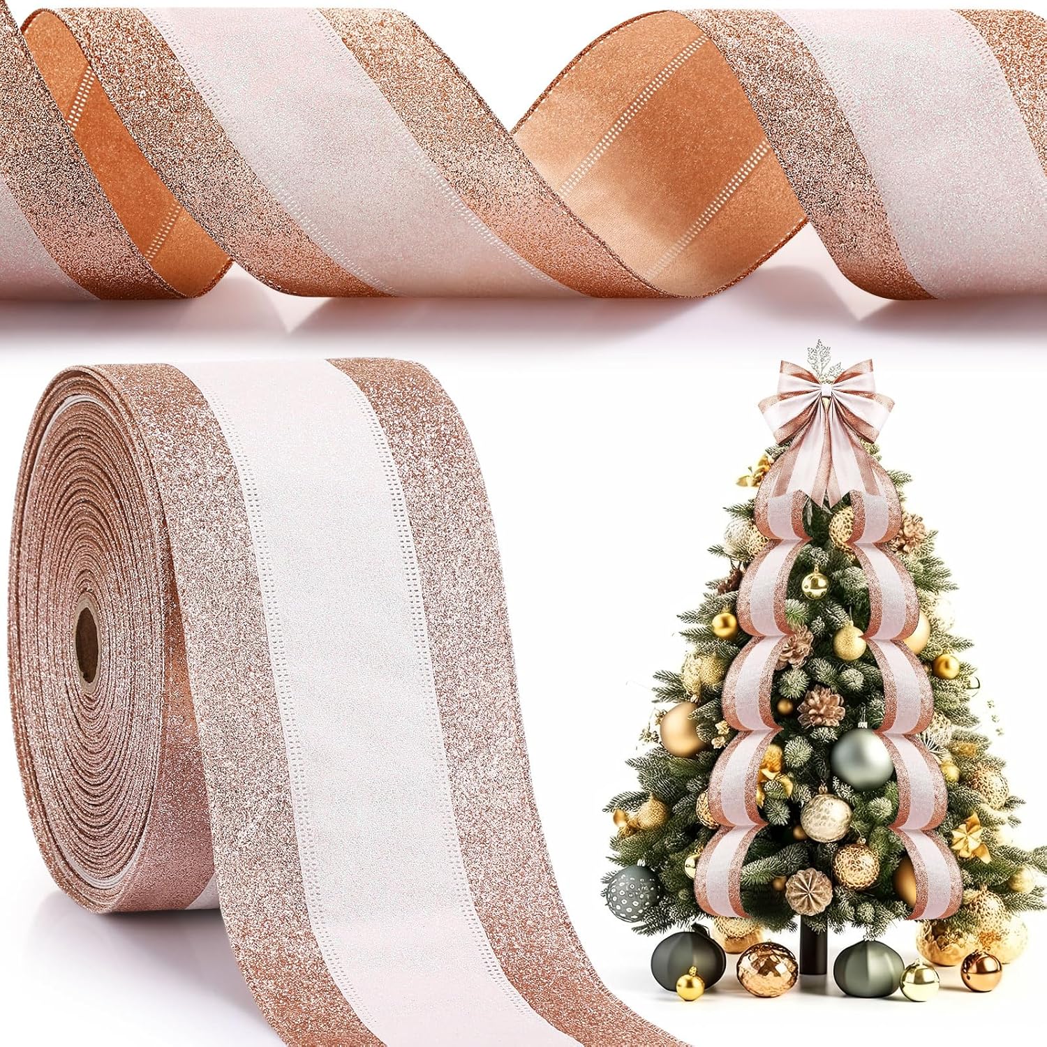 Features: The Xmas ribbon can be prepared as an exquisite gift for your mates, family members, neighbors, colleagues and other people who love crafting, bring them a cheerful Christmas. The wrapping ribbon brings a vibrant festive cheer to your party decorations. Its warm and rich colors not only capture the essence of Christmas, but also adds a touch of elegance and charm to your decorations. Specifications: Color: as shown Size: approx. 4 inches/ 10.2 cm wide and 40 yards long Package includes: 1 Roll of glitter wired ribbon Notes: Manual measurement, please allow slight errors on size. The color may exist a slight difference due to different screen displays. Pointed items are included, it is recommended to wear tool gloves to avoid injury when using, and please keep it away from kids. Winding risk may exist, please keep our product away from children.