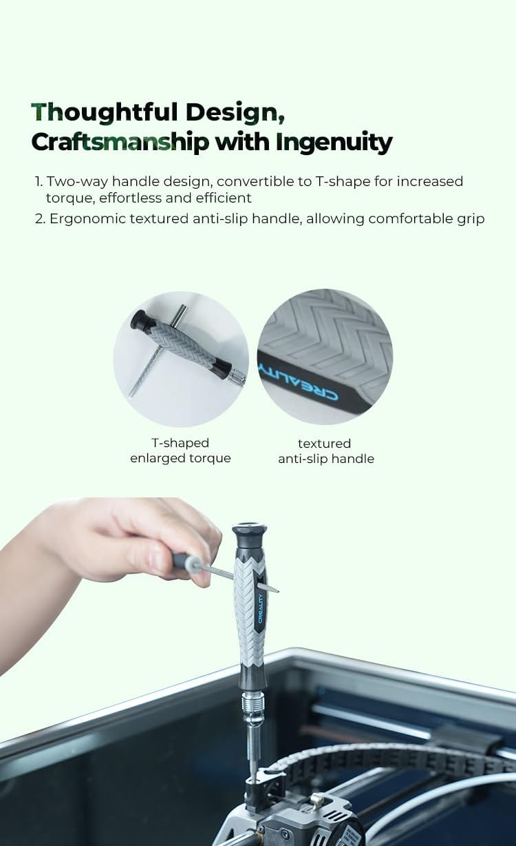 Creality Upgraded 3D Printer Tool Wrap Kit Pro ➤Professional Versatility, Wide Applications: Disassemble, assemble, connect, grind, cut, scrape, shovel... it can do whatever you can think of. ➤Multi-functional Screwdriver Set, Complete Specifications, Wide Applicability ➤Simple Yet Refined, Neat Storage: Simple yet refined, organized without clutter; find your place even in the smallest spaces. ➤Thoughtful Design, Craftsmanship with Ingenuity: 1. Two-way handle design, convertible to T-shape for increased torque, effortless and efficient 2. Ergonomic textured anti-slip handle, allowing comfortable grip ➤Post-processing Tools for Perfecting Models: Chamfer knife with 360° rotatable blade, for precisely refining edges of artwork. *Engraving knife and files for easy handling of different locations on the model surface, edges, corners, etc. (Please use with care) Specifications: ●Product Name: 3D PRINTER TOOL WRAP KIT PRO ●Package Dimensions: 264x85x197mm ●Weight: 1.2kg ●Nozzle Temperature: Up to 300°C Packing List: ●3D Printer Tool Wrap Kit Pro Why choose us? 24-hour feedback excellent customer service.