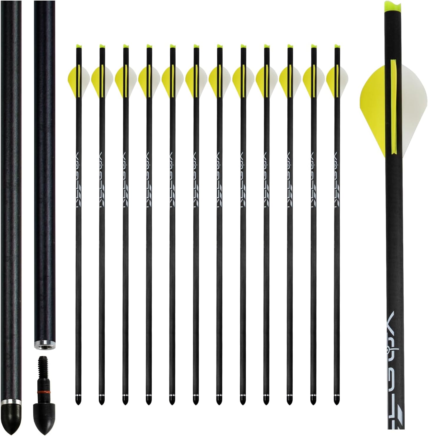 MYRRTE Archery provide the strong & reliable structure products for your archery career!Crossbow Bolts Fit for Crossbow:Arrows body length: 20''Arrow shaft size: 7.62mm (ID), 8.8 mm(OD)Shaft material: 100% Carbon FilberStraightness: +/-.001;Vanes: 2" Blazer Vanes;Package:12Pcs;User Notice➵ Warning: check for damage before each shooting.➵ Do not shot against concrete wall or any hard substance. This may damage the arrows.➵ The vanes may be bent because of long way transportation,but it can recover by using an air dryer for a while.