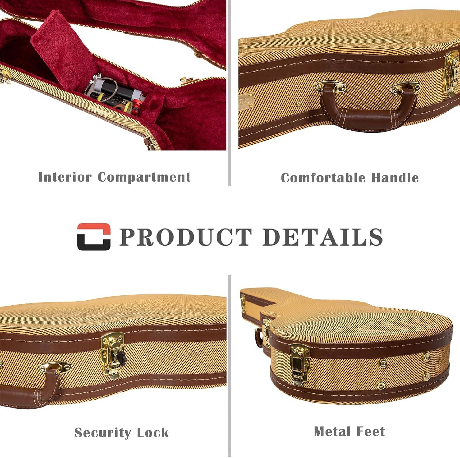 This case is designed for most 4/4 size Classical Guitars. Interior dimensions: Overall Length: 102 cm (40.1 in) Body Length: 50 cm (19.68 in) Upper Bout: 29.5 cm (11.61 in) Waist: 26.5 cm (10.43 in) Lower Bout: 38.5 cm (15 in) Body Depth With Bridge: 12.8 cm (5 in) Weight: 4.6kg (10.14 lb.); Kindly reminder: please always measure your instrument before purchase to ensure a proper fit. Package Contents : (1) Crossrock Wooden Classical Guitar Case (2) Removable Padding (3) 2 Keys