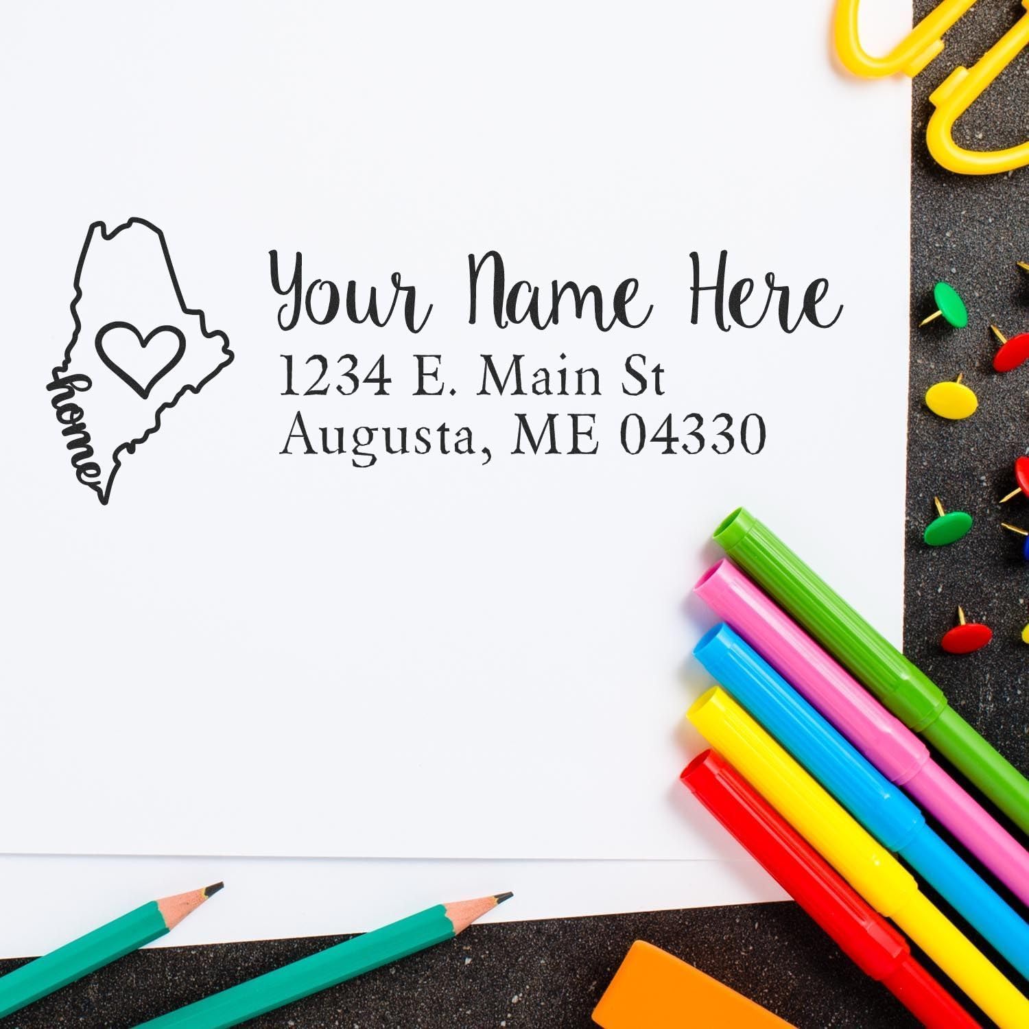 Express Your Connecticut Pride with Style. Introducing the PSI Pre-Inked Connecticut State Love Professional Return Address Stamp - the perfect blend of state pride and practical elegance for your correspondence needs.Crafted with precision, this 7/8" x 2-1/4" custom stamp features a striking silhouette of Connecticut with an artfully integrated "love" script, making it an ideal choice for wedding invitations, holiday cards, and everyday mailings. Choose from five vibrant ink colors to match your personal style and make your mark with .Built for lasting performance, our professional-grade pre-inked stamp delivers up to 15,000 crisp, clear impressions before requiring re-inking. The oil-based ink ensures smudge-free, professional results every time, while the smooth, quiet stamping mechanism provides a superior user experience. engaged couples planning their dream Connecticut wedding, this address stamp adds a personal touch to save-the-dates, invitations, and thank-you cards. The elegant design transforms ordinary envelopes into sophisticated pieces of correspondence that showcase your state pride and attention to detail.Whether you're addressing wedding invitations, personalizing gift tags, or streamlining your daily correspondence, this custom address stamp combines functionality with artistic flair. The durable construction and consistent impression ensure your mailings always look polished and professional.Save time and elevate your stationery game with this versatile address stamp. No more hand-writing addresses or printing labels - simply stamp and go. The pre-inked design means you're always ready to make your mark with style and precision.Make a statement with every piece of mail you send. Order your PSI Pre-Inked Connecticut State Love Professional Return Address Stamp today and experience the perfect combination of state pride, professional , and elegant design.