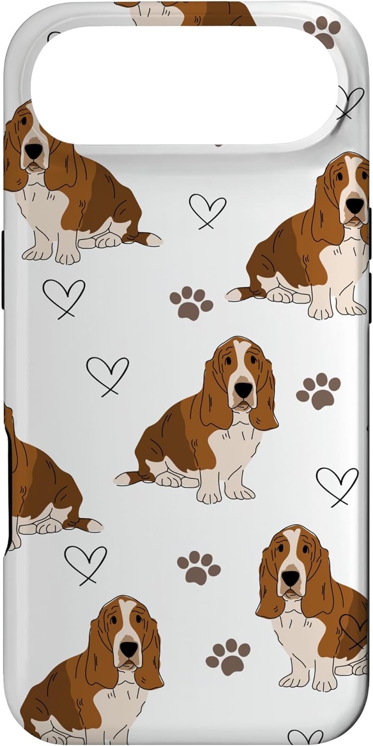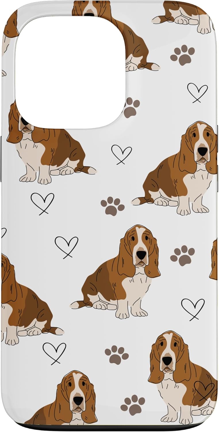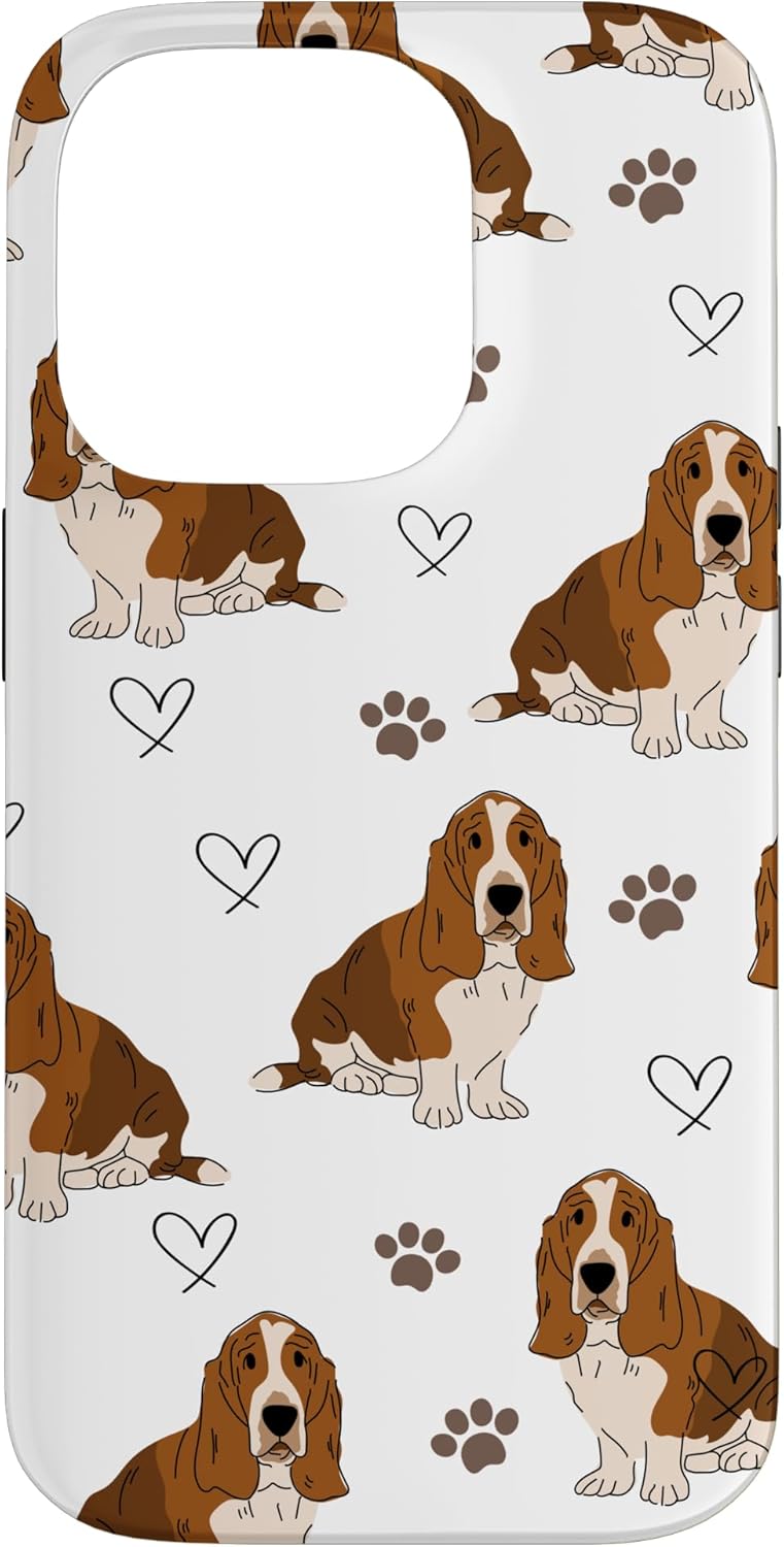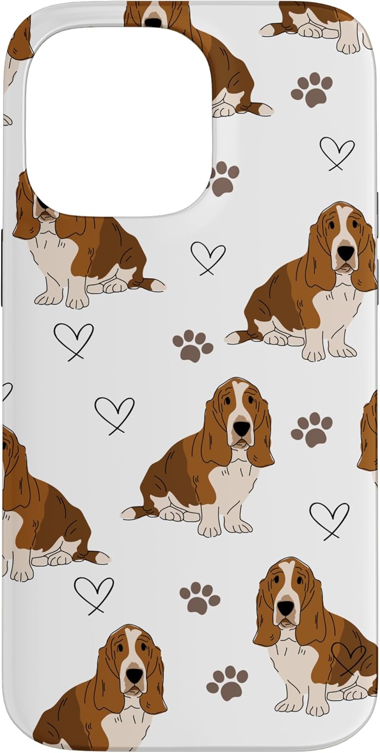 Cute pattern for dog lovers of basset hound dog in sitting in cute position. Great for puppy and pet fans, veterinarian, nurse, vet assistant, girl, boy, teen, women, dog groomers, dog sitters and dog mom.