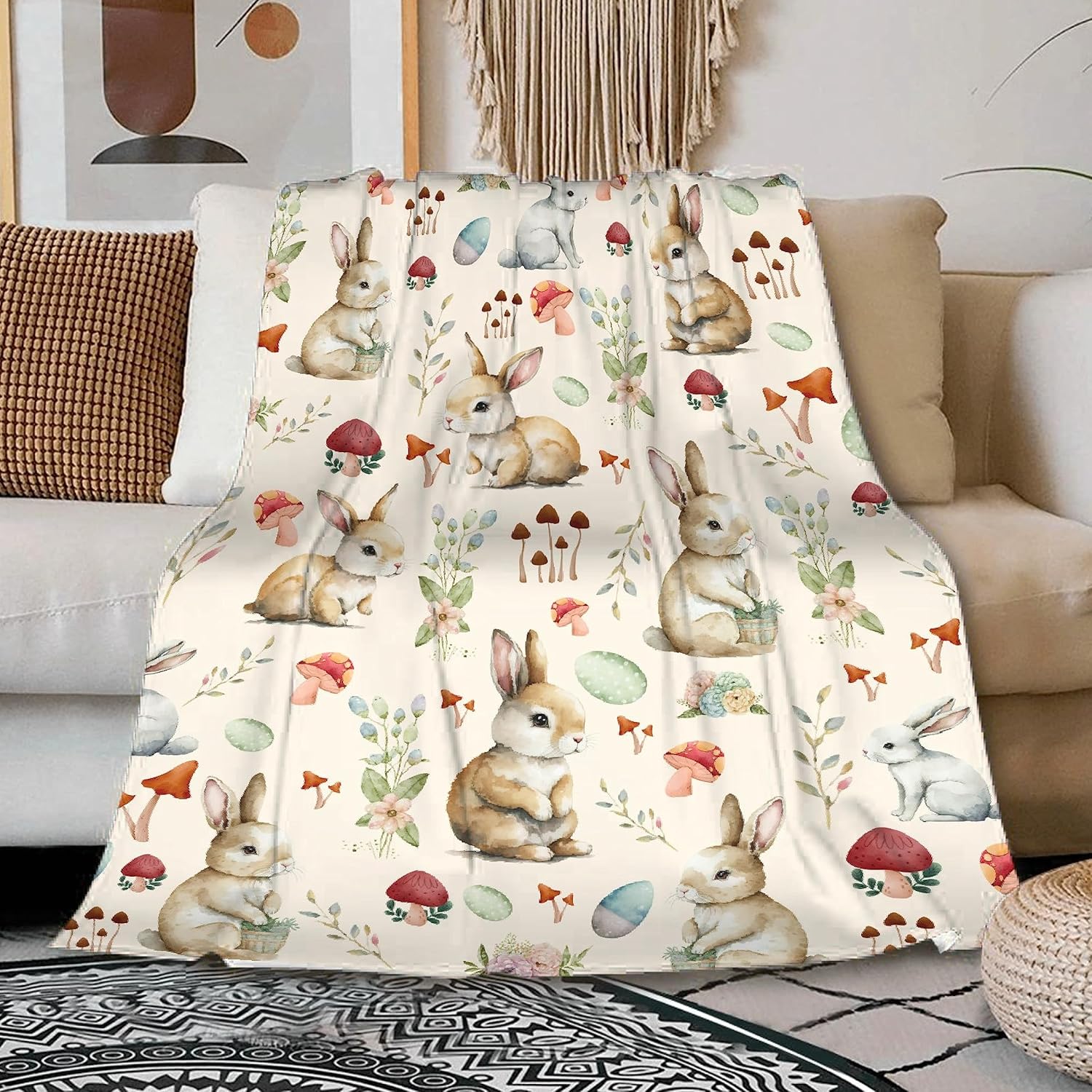 Cute Rabbit Floral Blanket for Toddler Kids/Child - Bunny Decor for Couch, Bed, Outdoor - 40"x50"