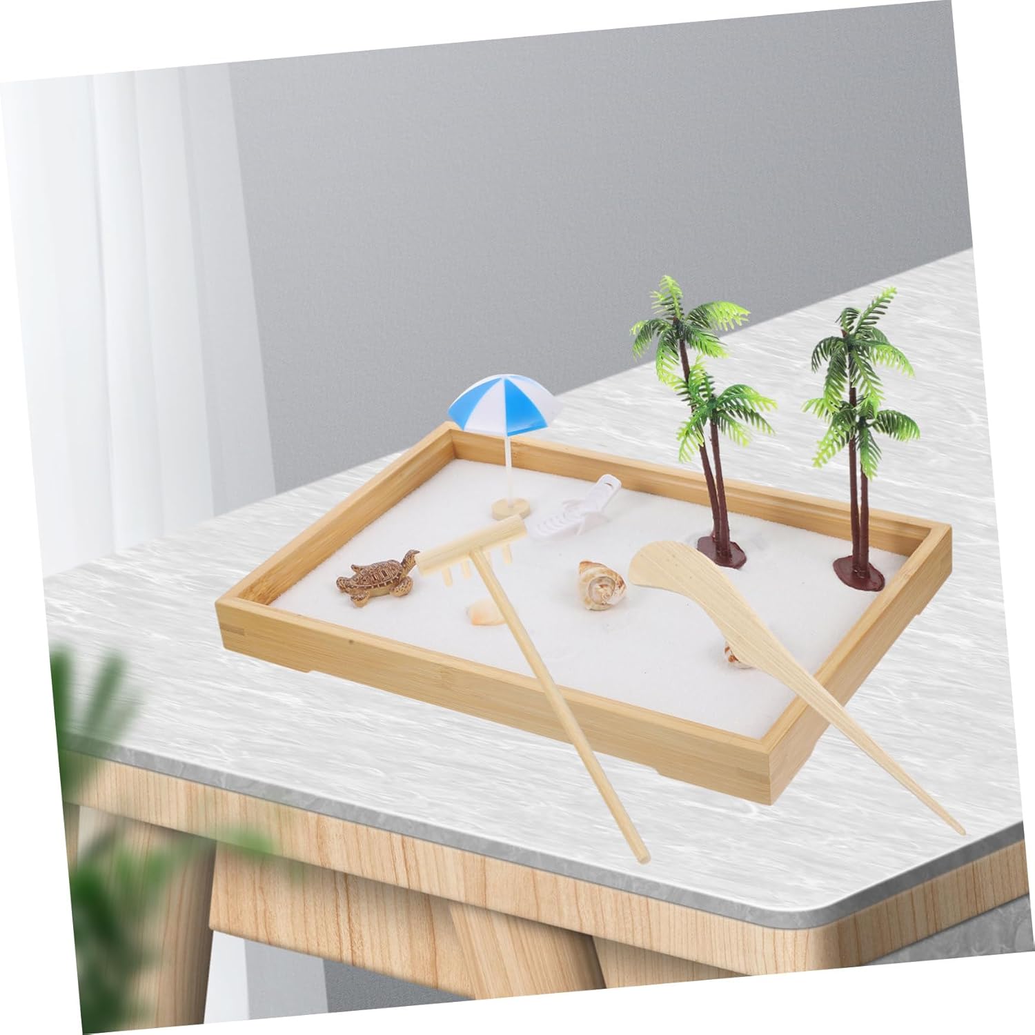 Package Include 1 x tray 1 x bag of gravel 2 x simulation coconut trees 2 x conch 1 x scallop 1 x sea turtle 1 x sun umbrella 1 x beach chair 1 x 1 x Characteristics -Size:4.20X3.90X1.70cm/1.65X1.53X0.67in(sea turtle) miniature beach zen garden -Size:7.80X5.50X5.50cm/3.07X2.16X2.16in(sun umbrella) Room Adornment -Size:13.00X5.00X5.00cm/5.11X1.97X1.97in(coconut tree) Ocean Scene Sand Table -Material:Resin, , gravel, shell Beach Sandbox -Color:Assorted Color Miniature Landscape Ornament -Size:28.00X19.00X2.80cm/11.00X7.47X1.10in( tray) Scene Decor - Made of reliable material for use. A great present for your friend and family during the party and festival ocean sand tray. - Friends who love to DIY can choose the present for self relaxation, and they will love it beach style miniature ornament. - Great present choice to send it to families, friends or colleagues who like the sandbox DIY desk sandbox. - This zen garden kit is suitable for family, wedding present, present, shop, hotel, yoga club decoration Garden Miniature Landscape. - This sandbox can be for sand table model or building model, even for micro landscape ornament Miniature Landscape.Goods InformationSandbox for Desktop You can use them to decorate bedroom, office and so on.Zen Garden Sand Tray They are made of very material and are .Miniature Beach Ornaments Are you still looking for ocean micro landscape sand table decor suitable for home decoration? Our decoration has realistic appearance and are very