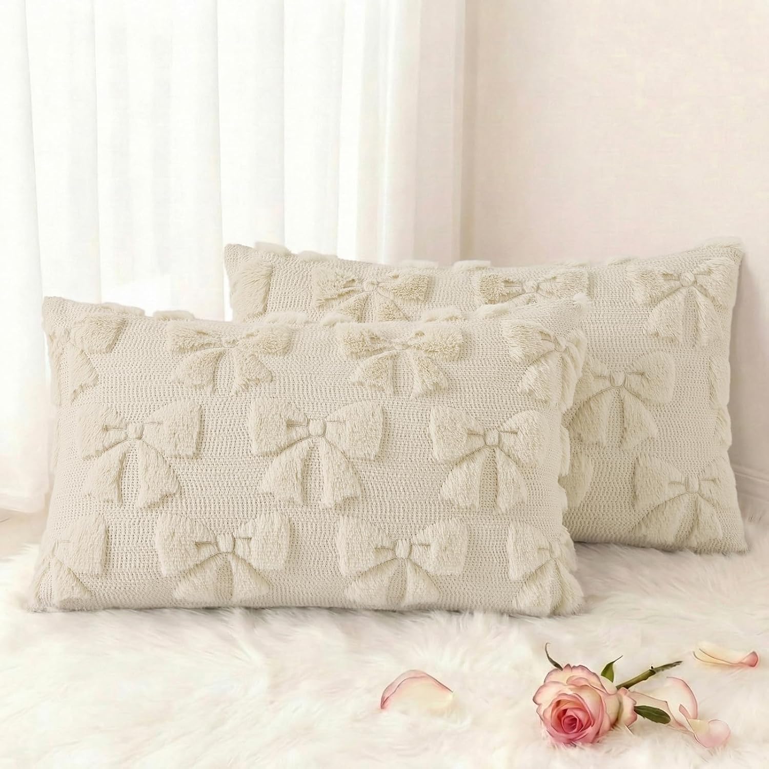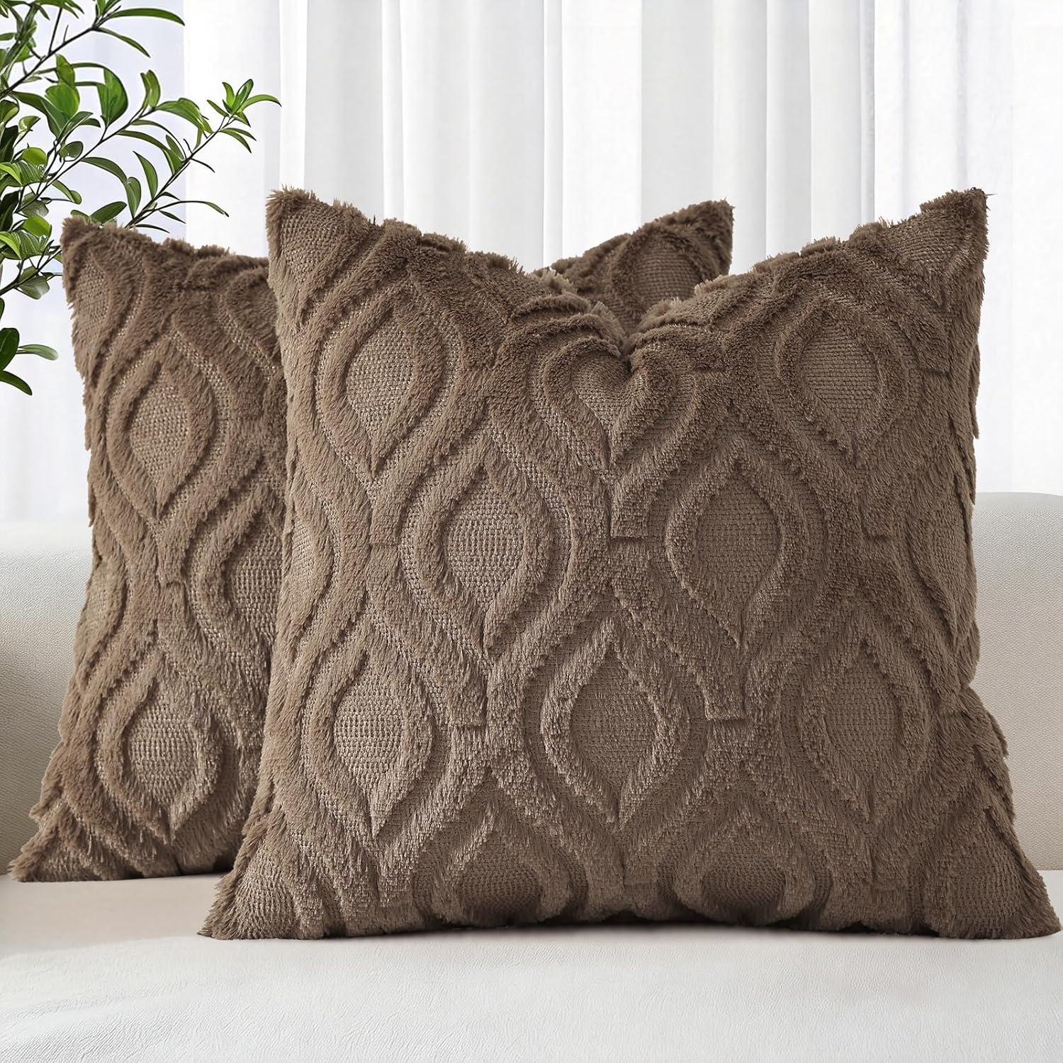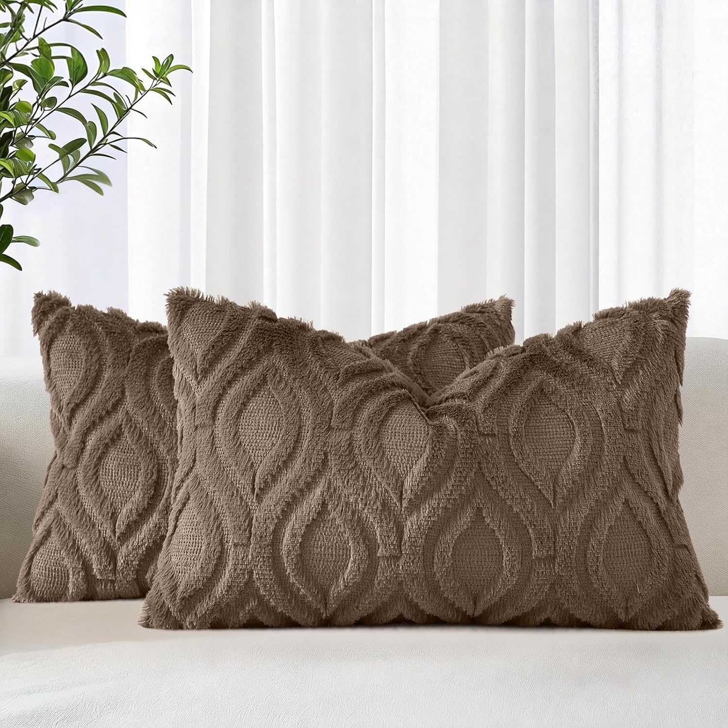 decorUhome Decorative pillow covers are the nice choice for decorating your home Features and Material: Fluffy Faux Fur Front, Cozy Velvet Back, Soft and Comfortable, Thick and Sturdy. Hidden Zipper: The zipper is the same color as the cushion cover. The delicate zipper gives the cover a nice look. Smoothly zipping makes stuffing and cleaning quite easy. Size: 12x20inch/30x50cm, 16x16inch/40x40cm, 18x18inch/45x45cm, 20x20inch/50x50cm, 22x22inch/55x55cm, 24x24inch/60x60cm, 26x26inch/65 x65cm Color: beige, cream white, khaki, sage green, grey, yellow, rust, red, burgundy, green, black, navy blue, blue grey Package Contents:Package includes 2 pieces of throw pillow covers. INSERTS ARE NOT INCLUDED. Is this pillow covers well made? Our pillow covers are made from the finest quality. Pillow covers can bring great degree of softness and comfort. This also helps keep adding a finished look and prevents wear and tear. There is a line in the middle of each pillowcase. Is this permanent? Once the pillow is tucked in, the line will disappear within a day or two. Or wash them and dry them, and the thread is gone. If there are still a few lines, you can erase them with your fingers. Does this pillow covers go well with the decor of my room? Of course! Available in a wide variety of stylish, sophisticated colors, our throw pillow covers will be the nice complement to any room design. You can also use the pillowcases in multiple places in your home, such as your couch, bedroom, living room, or patio garden.