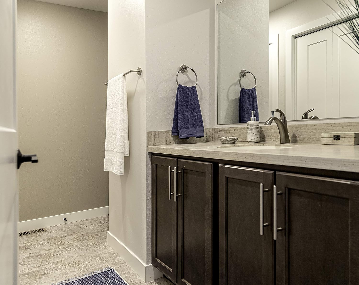 The Design House 558379 Graz towel bar is a contemporary addition to any bathroom. This modern towel bar is constructed with zinc, finished in satin nickel and measures 24 inches long. This bar has rounded edges and a sturdy design for hanging medium to larger sized towels. You can hang this bar above a toilet, on a door, in a closet or along a wall. A standard mount and concealed screws are included for easy installation. Using the provided installation template, installation is quick and straightforward. The Graz Collection features a matching towel ring, toilet paper holder and robe hook. Designed and manufactured by Design House, the trusted source for quality lighting, hardware, plumbing, kitchen, and bath products for every taste and budget.